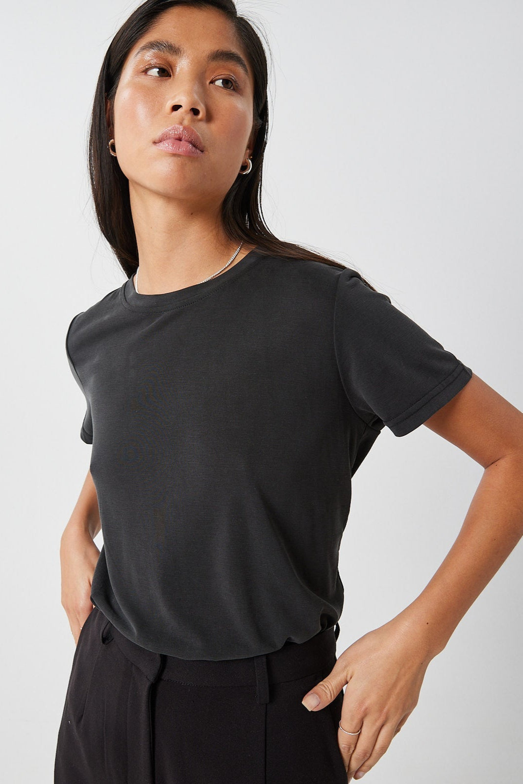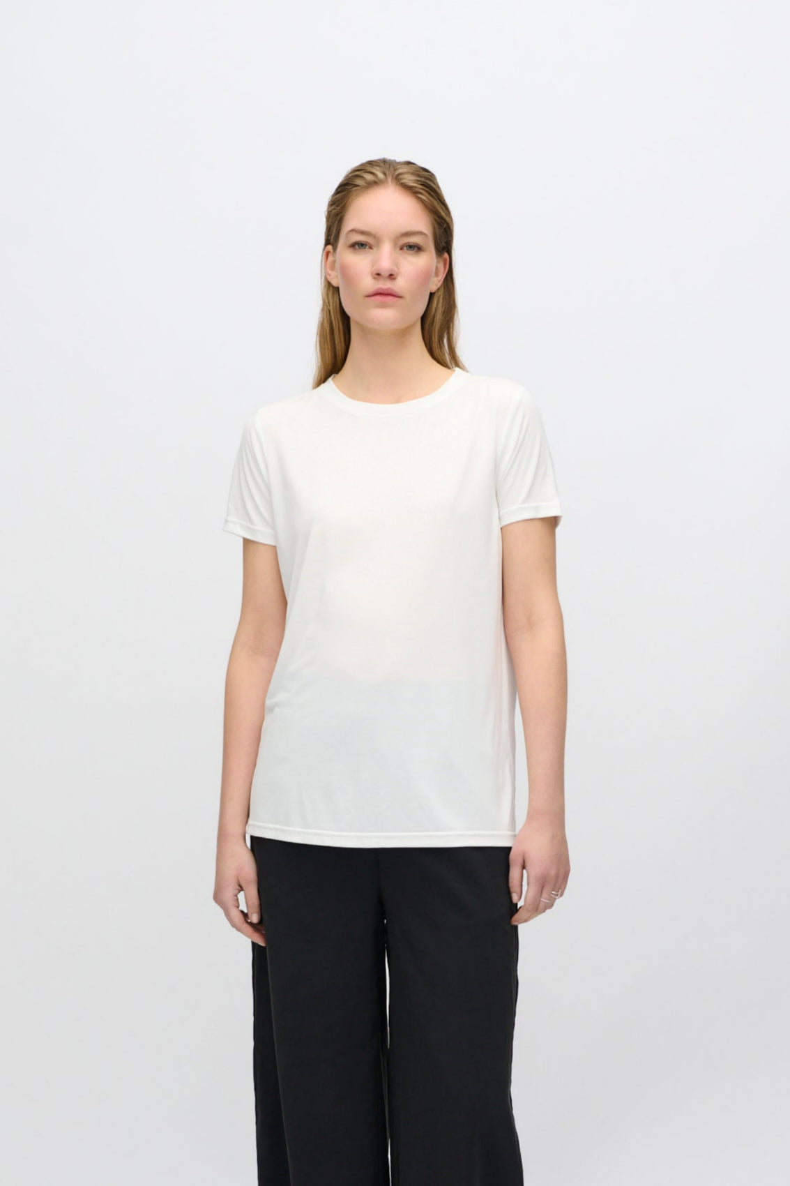 Short-sleeved T-shirt, made from a blend of Tencel™ modal and recycled polyester with a soft washed look. A quality product, pleasant to wear against the skin. It has a loose, regular fit and a crew neck.