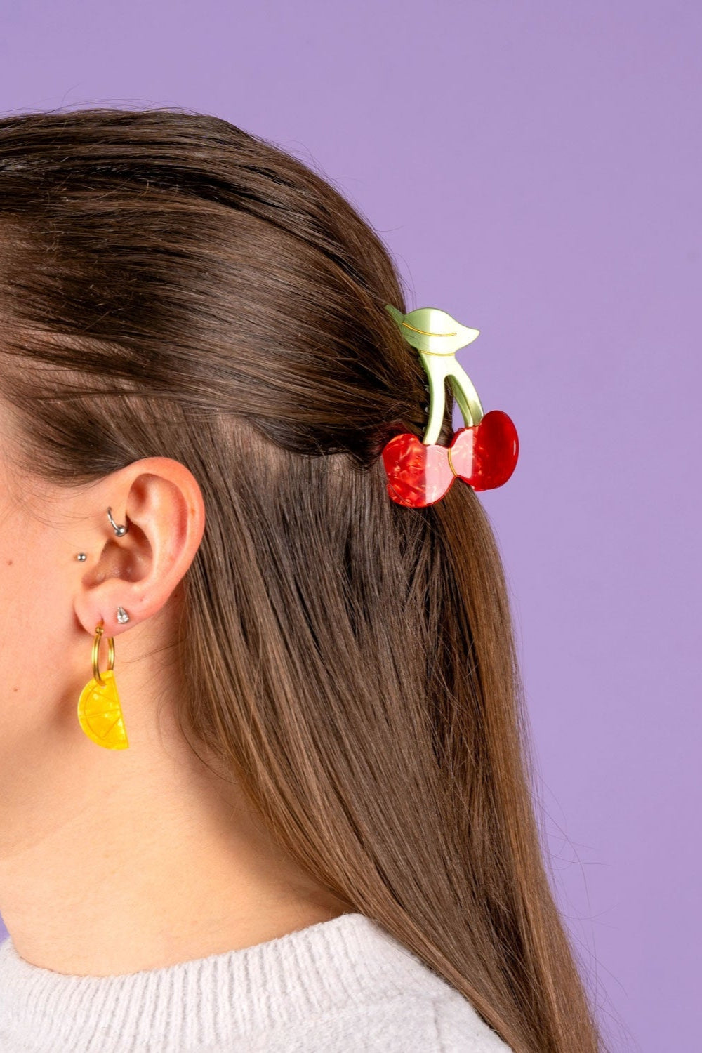 A pretty pair of cherries on top of the head as a hair clip, in a deliciously retro spirit that we love at Coucou Suzette.