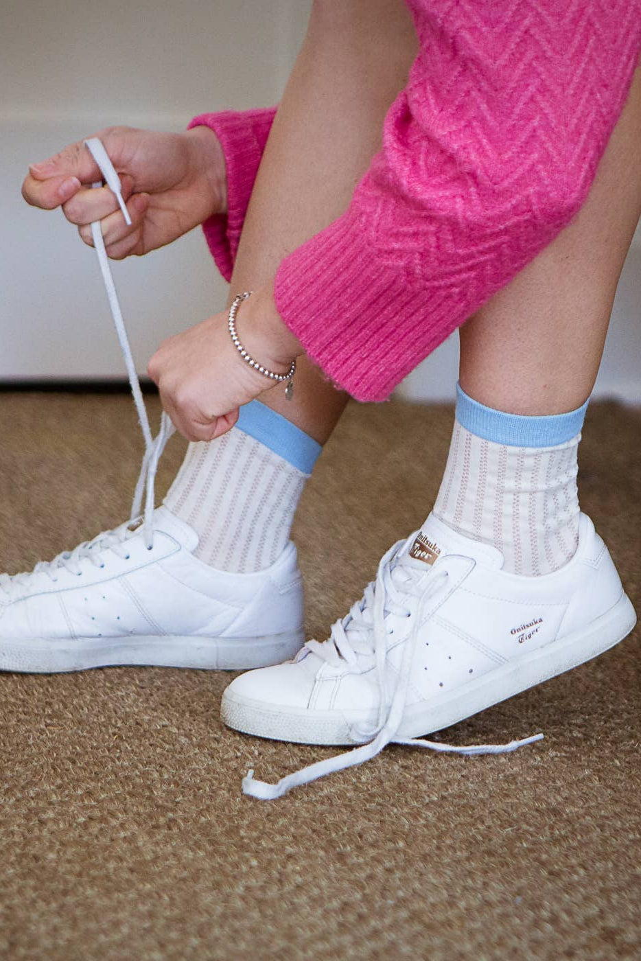 Sunday socks feature a smooth cotton pointelle knit and a sporty, colorful stripe. Pair with sneakers, loafers, or dressy or casual sandals to show off the cute OS details.