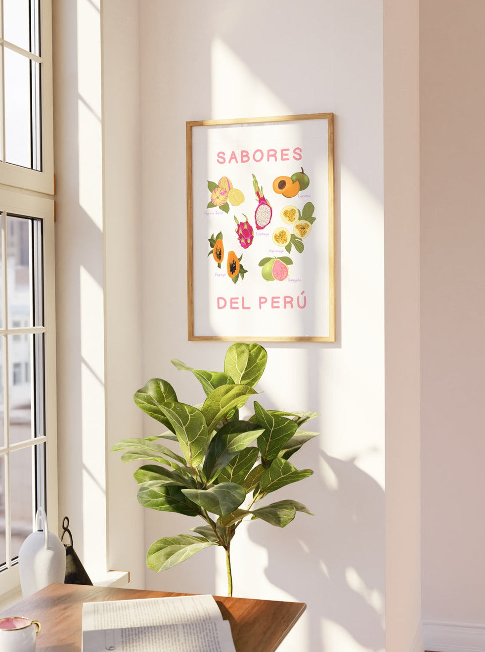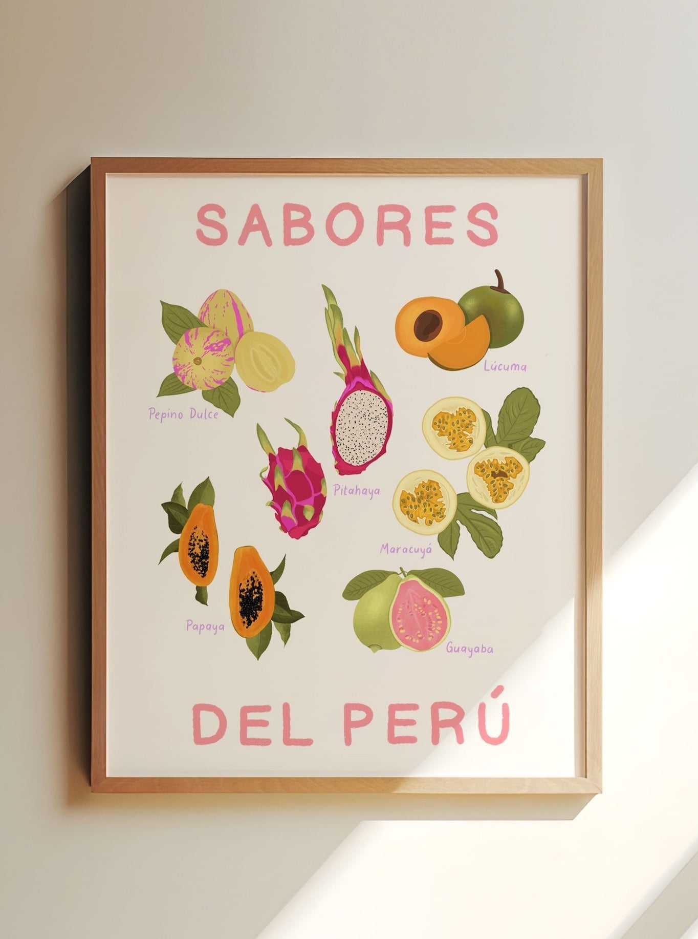 Enhance your kitchen with this illustration showcasing a vibrant array of tropical fruits from Peru. From the enchanting sweetness of lucuma to the burst of flavor of Maracuya and the exotic taste of Pitahaya, this poster captures the rich diversity of flavors that define Peruvian cuisine. Bring a touch of Peru's tropical paradise to your decor and inspire your culinary adventures with this magnificent work of art.