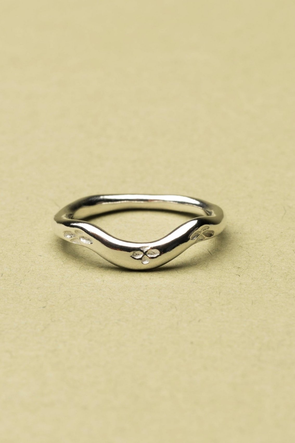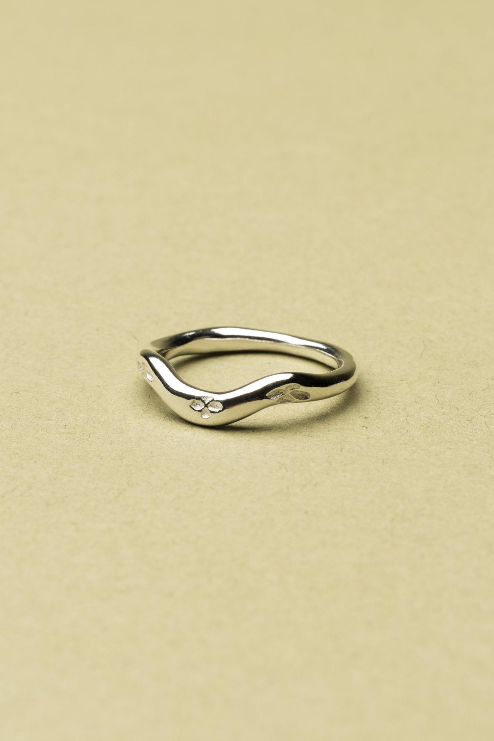 This ring is part of the Champ Fleuri collection, which pays tribute to the patches of land that wild flowers take over. It also evokes the fluidity of the movement of water and wind that makes the landscapes undulate.