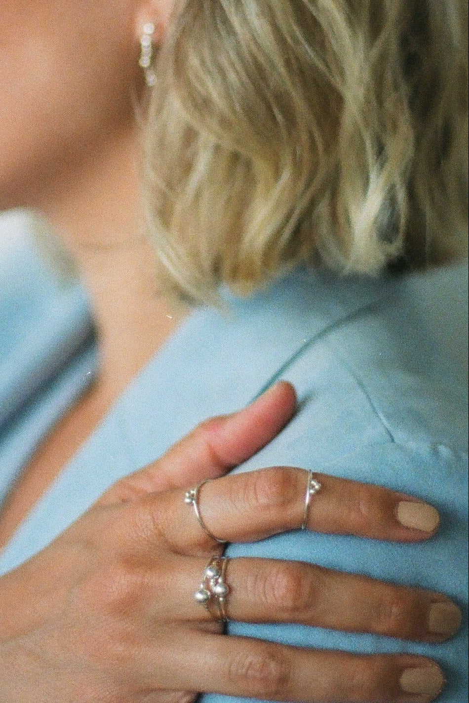 Discover our delicate, stackable ring, meticulously crafted in sterling silver. Adorned with small, minimalist clusters of granules, this piece will add a sublime touch to your style while remaining understated and elegant.