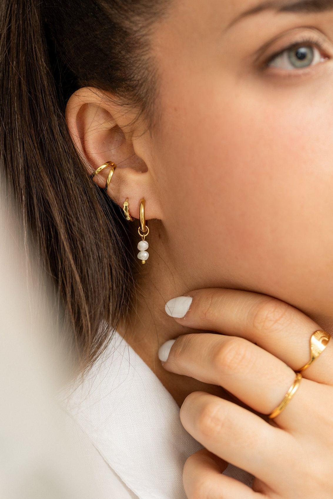 Rings with natural freshwater pearl charms. Super versatile earrings since you can remove the charms, wear just one,... the choice is yours!