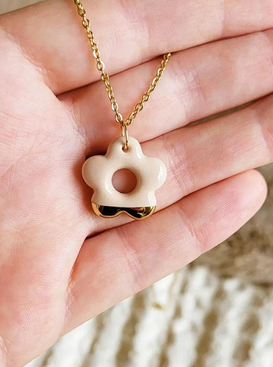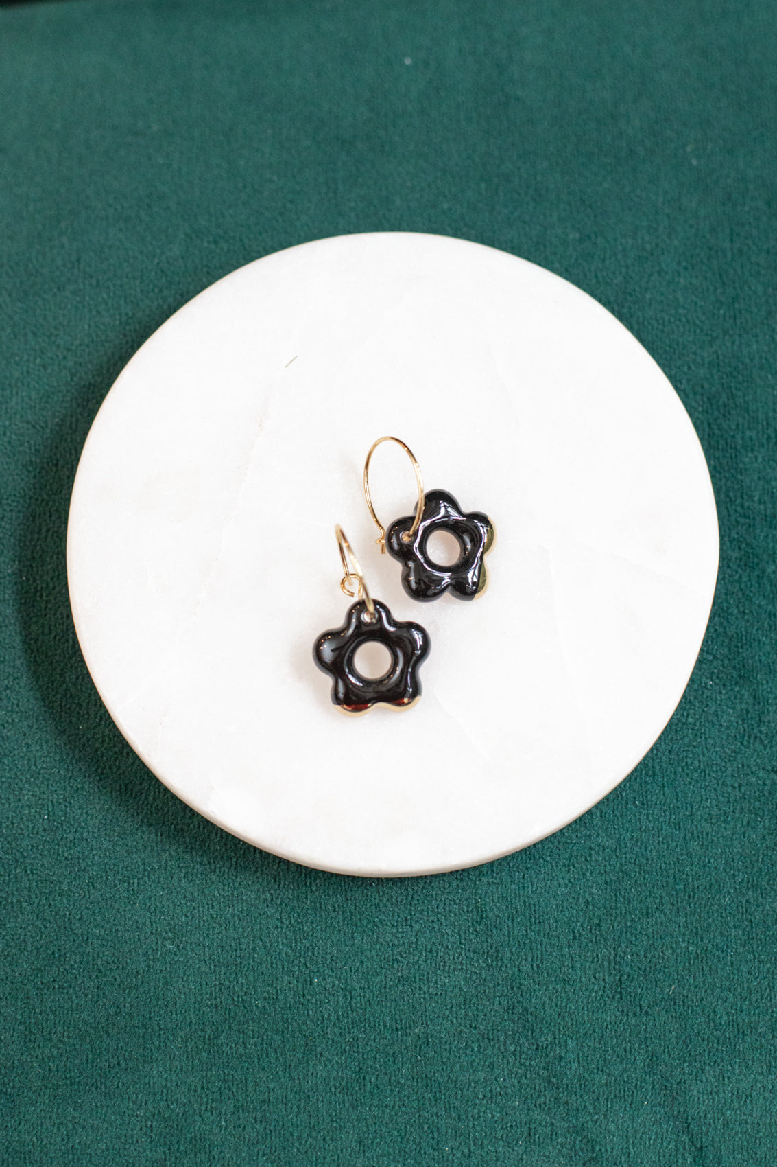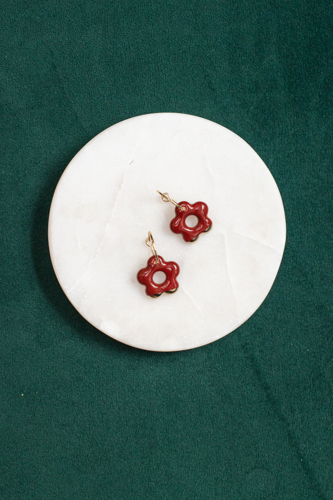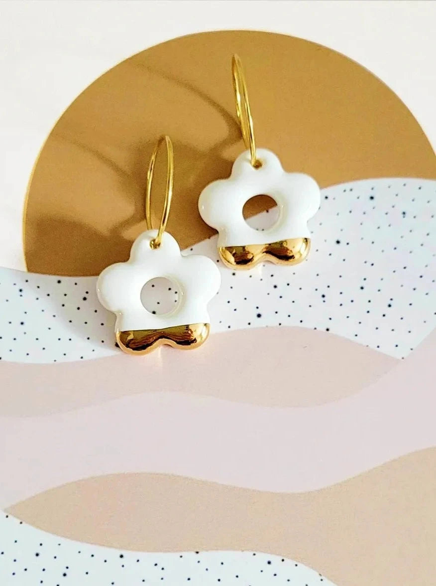 Ceramic flower earrings 1.8 cm & ring 15 mm