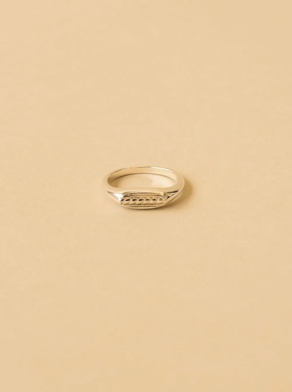 Sterling silver signet ring with elongated boat rope texture