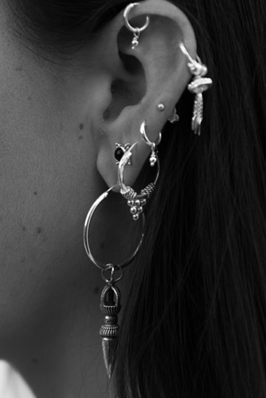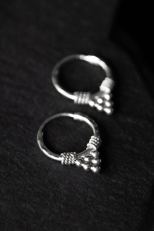 These essential hoop earrings, each adorned with a majestic five-pearl mountain, draw inspiration from the opulent creations of ancient Rajasthan. These pieces bear witness to meticulous craftsmanship, born in the heart of the desert state of Rajasthan. Embracing a timeless essence, they evoke a vintage charm that captivates with a unique and distinctive perspective.