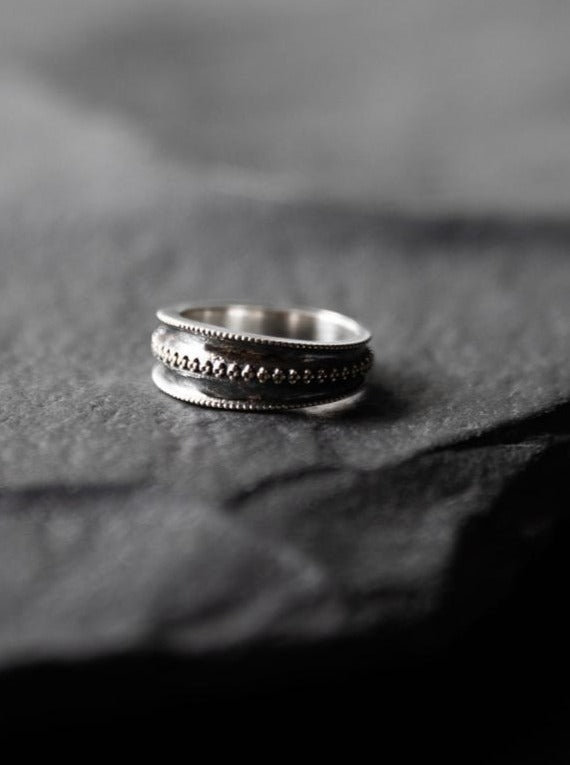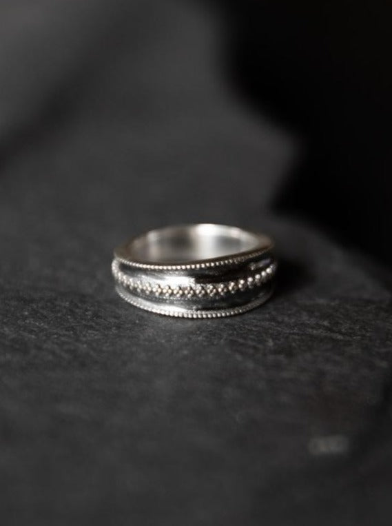 An alternative piece that skillfully brings together refined craftsmanship and natural beauty. The Pathway ring is carefully crafted with grained details and intricate lines, revealing a piece that captures both the beauty and journey of life.