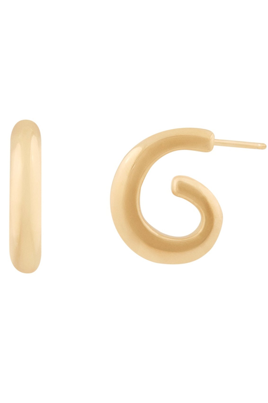 Meet the Athena hoop earrings, the must-have earrings that add sparkle to any outfit. Their unique spiral shape makes them truly special, while their lightweight design makes them both stylish and comfortable. Wear them as a statement piece or pair them with other bold accessories for a memorable look.