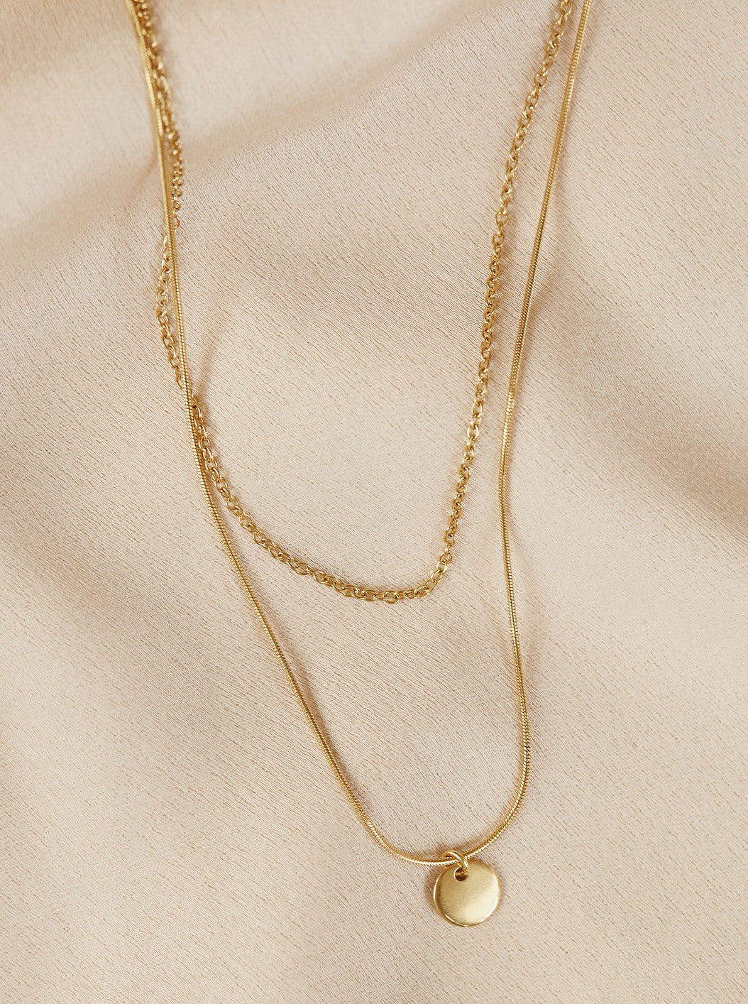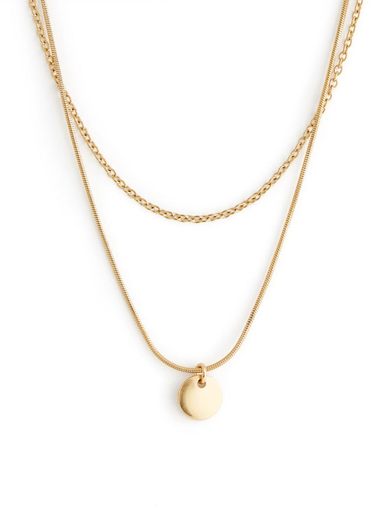 Composed of two delicate chains and a simple pendant, this piece pairs beautifully with any outfit. While it looks lovely worn alone, it can also be layered with other necklaces!