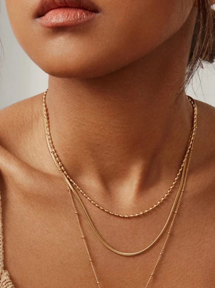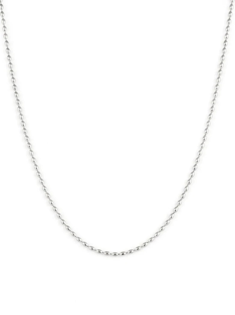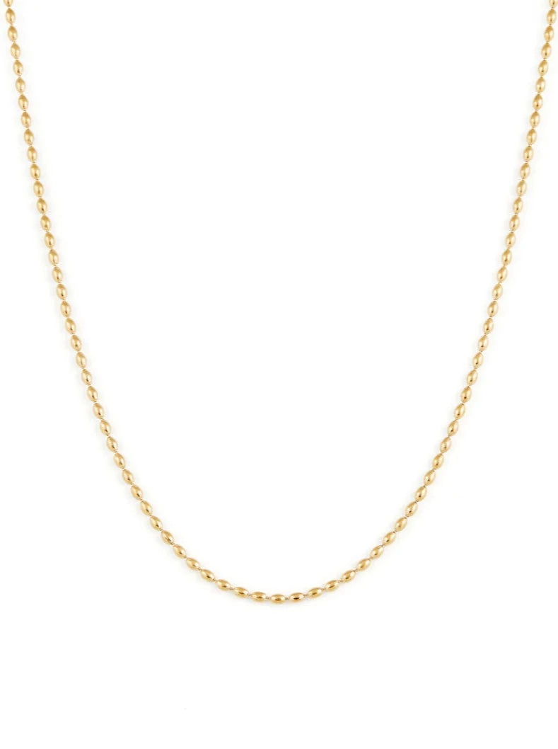 This necklace, made of delicate oval-shaped beads, looks great on its own or pairs easily with your other favorite necklaces! Its slightly short length makes it the perfect piece for everyday wear.