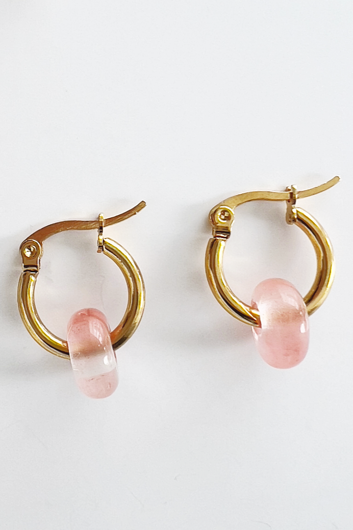 Description Make a wish and add a pop of color to your outfit with these pretty mini natural stone hoop earrings! Each hoop is adorned with a pretty natural stone bead for a minimalist and delicate touch. Perfect for the trendy and hipster at heart! (Don't forget to make a wish while wearing them!)