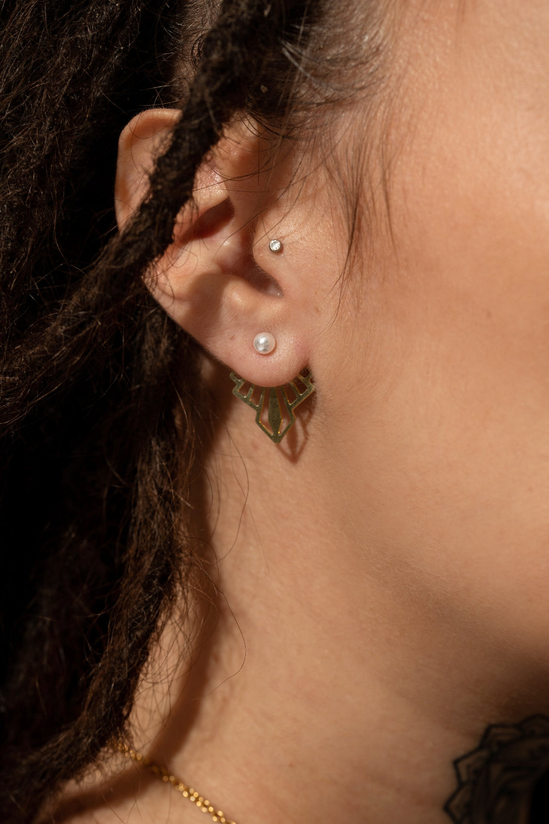 Little pearls, an essential! Wear them alone or to complement your ear jackets (see photo).