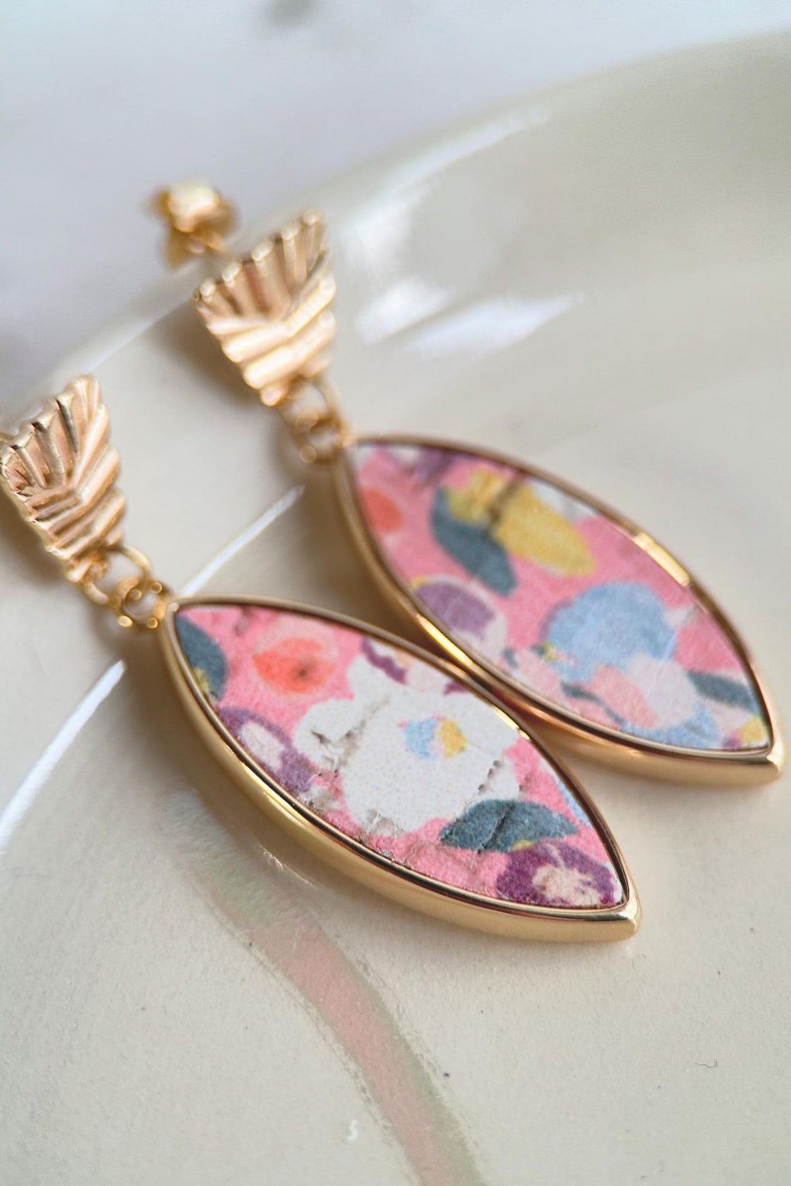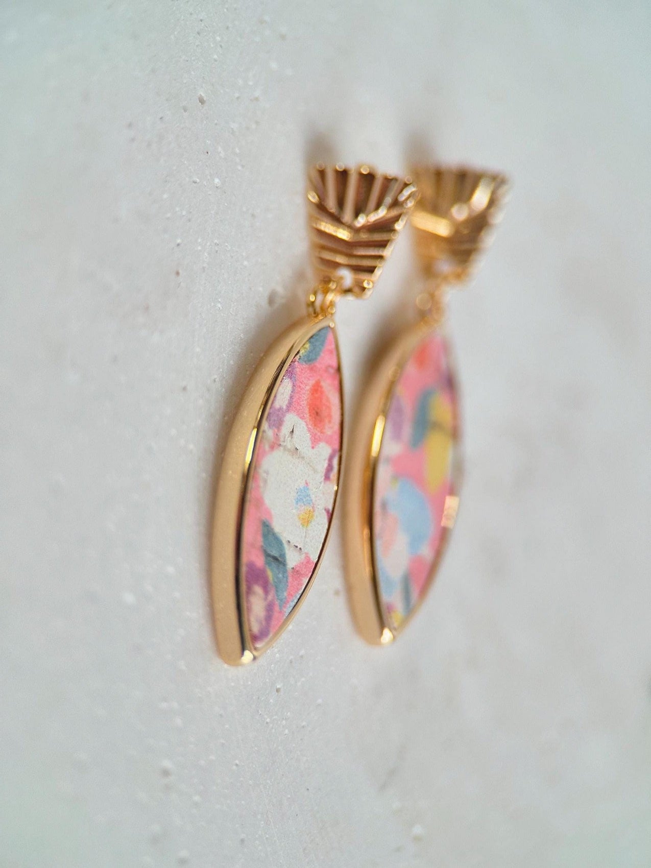 Pendant: Ellipse shaped pendant with 18k gold plated outline, 35mm x 13mm, colored cork piece