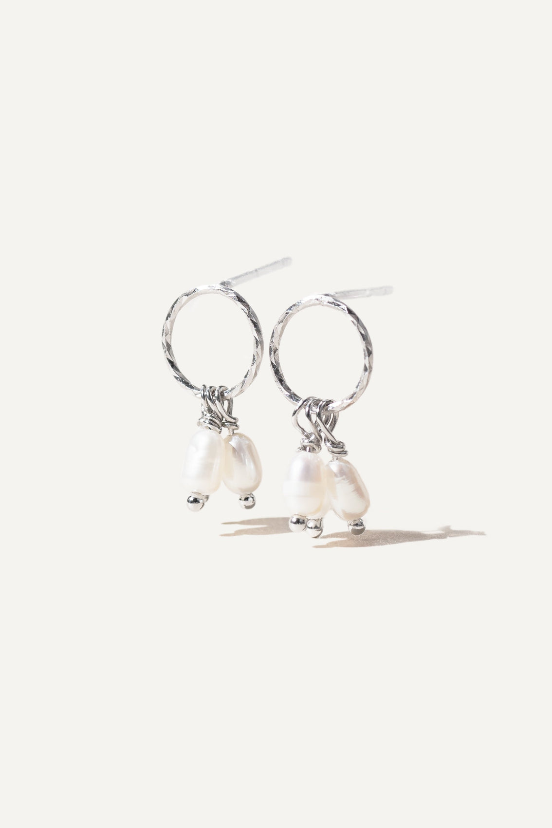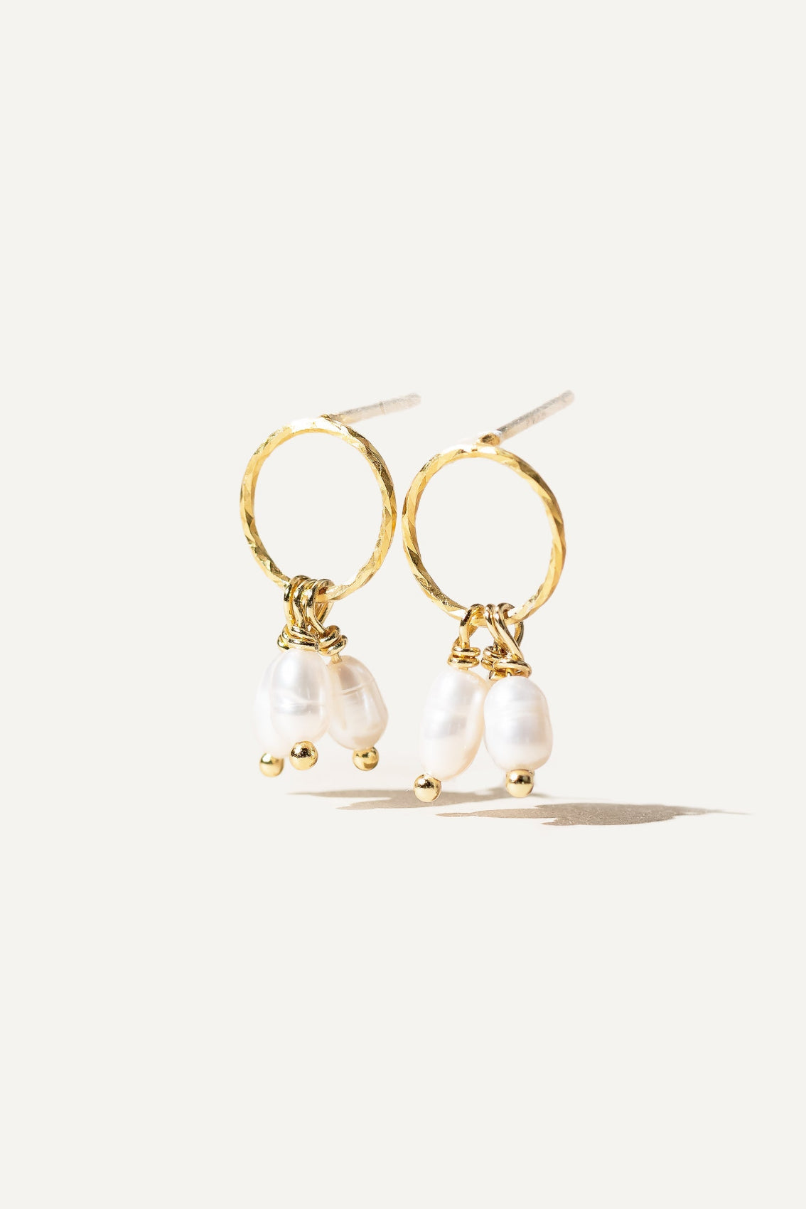 CIRCLE AND PEARLS ON 14K GOLD PLATED GENUINE SILVER EARRINGS
