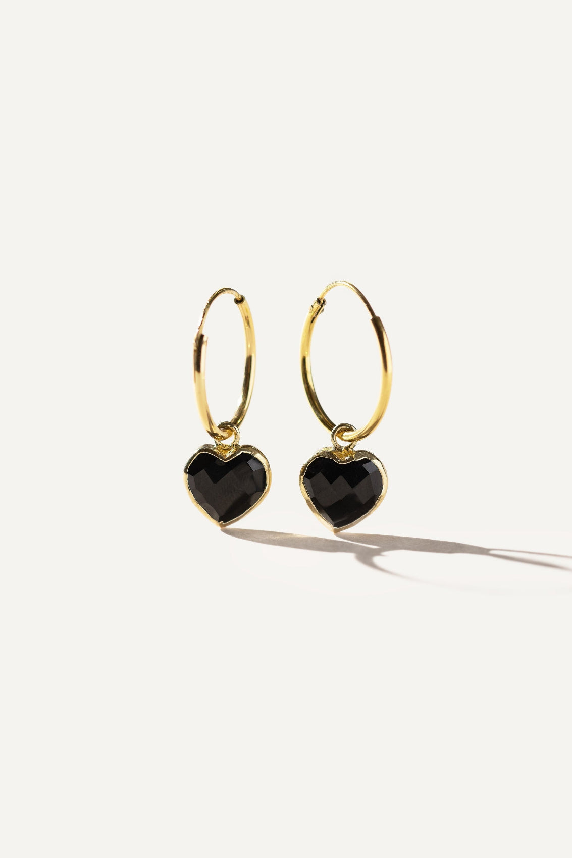 Faceted Heart-Shaped Stone Pendant on a 14K Gold- Plated Genuine Silver Hoop
