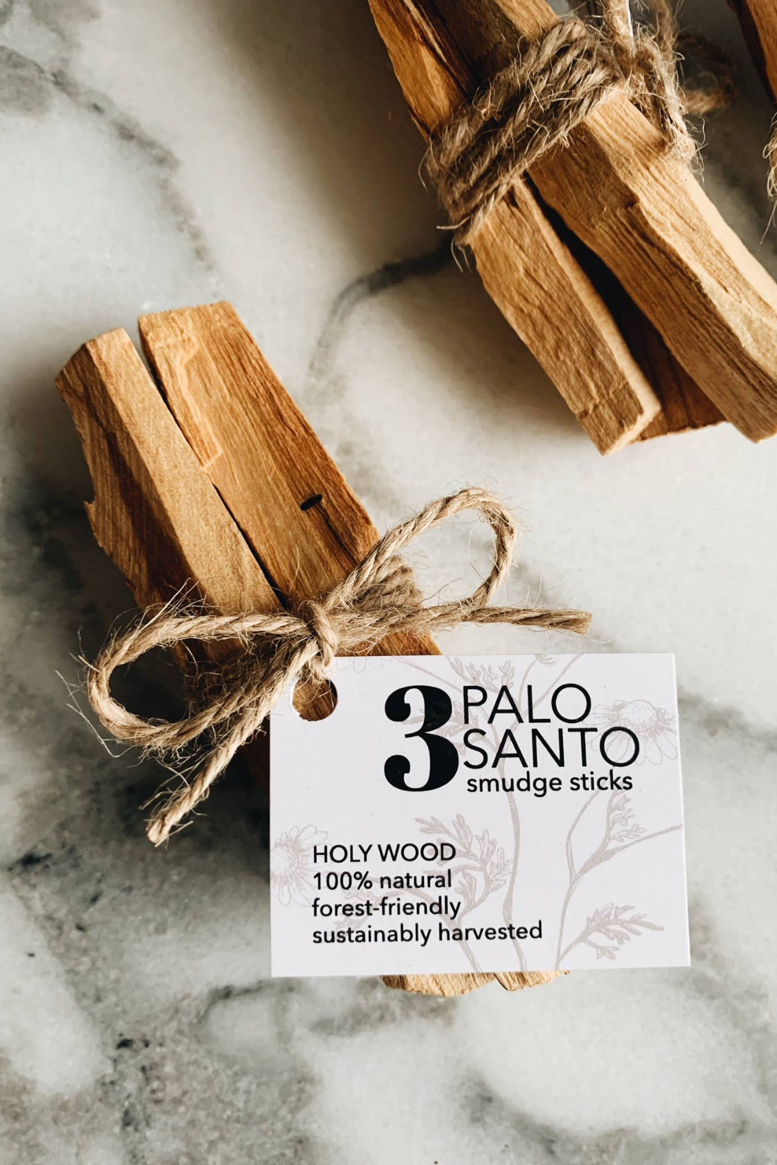 Palo Santo is a sustainably grown wood from South America that has natural aromatic properties from the tree resin.