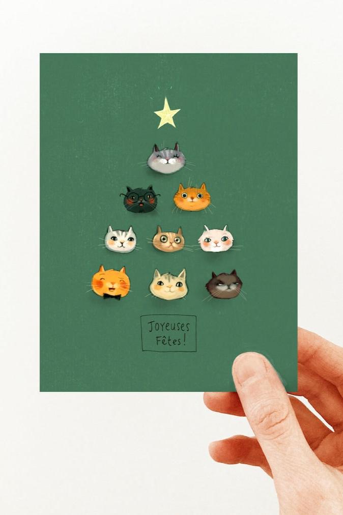 Greeting card, without text, representing cats making a Christmas tree Christmas card for cat lovers
