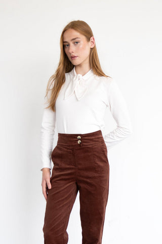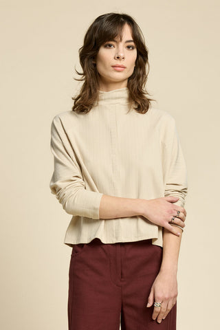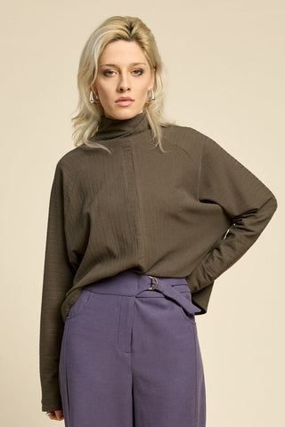 VALERIE C. Ribbed High Neck Top - Cocoa