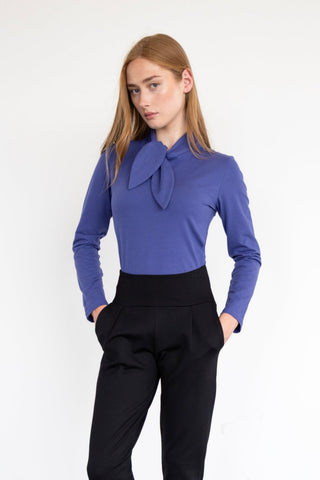 VALERIE C. Ribbed High Neck Top - Mauve Fig