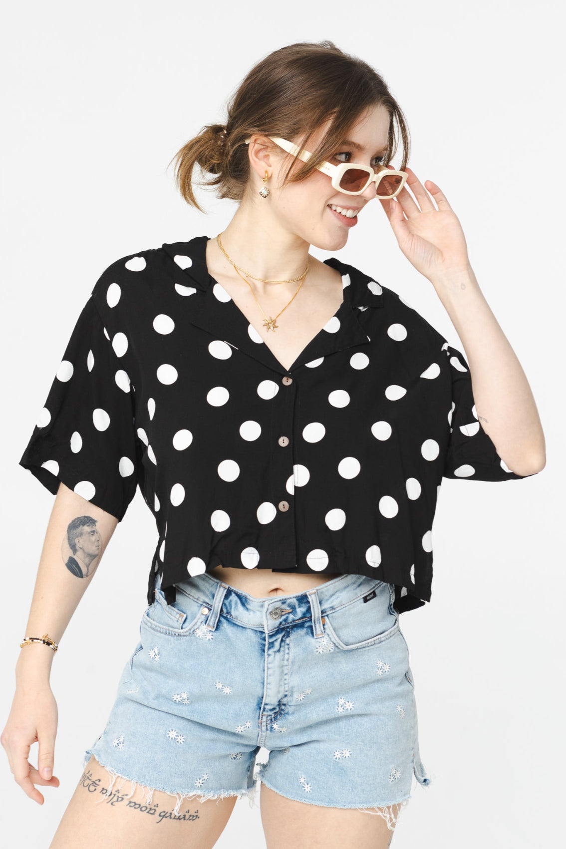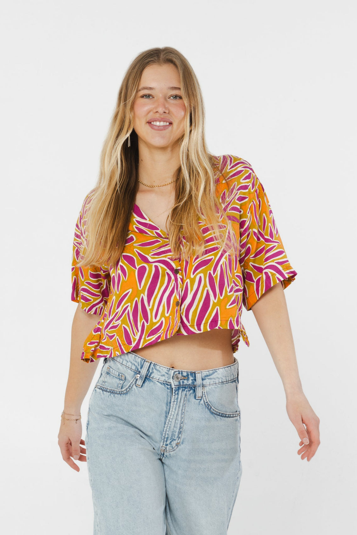 Loose-fitting short-sleeved blouse perfect for all occasions.
