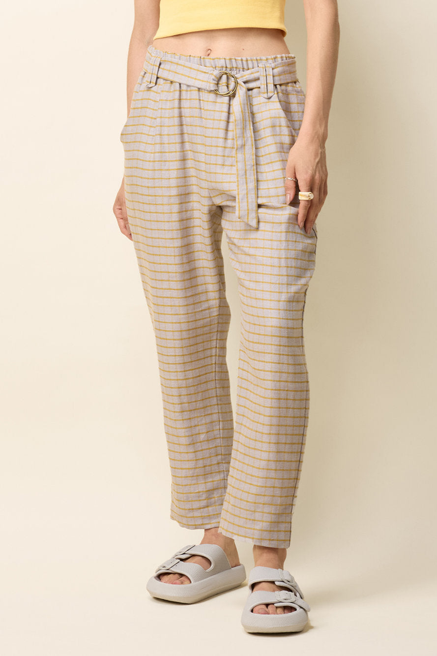 Pants available in checked or plain fabric. Comfortable thanks to its elastic waist, it will add that little extra to your outfit!