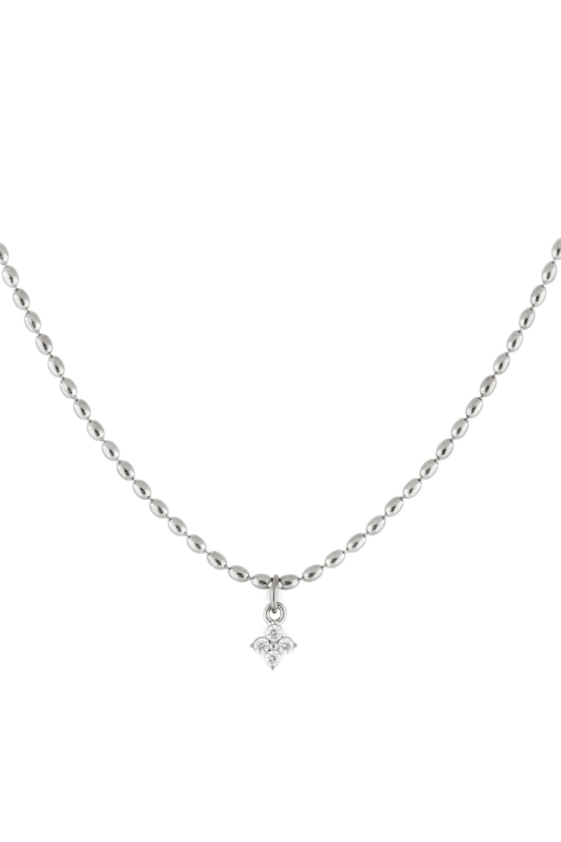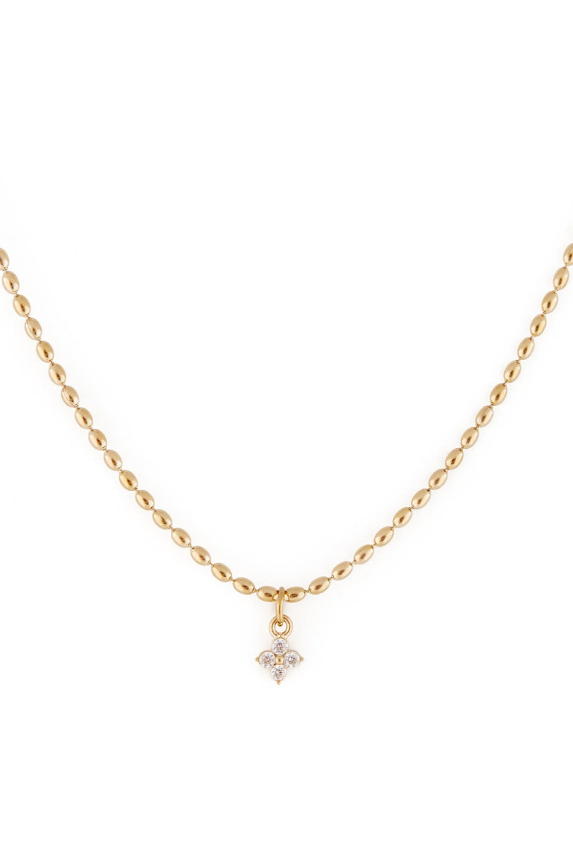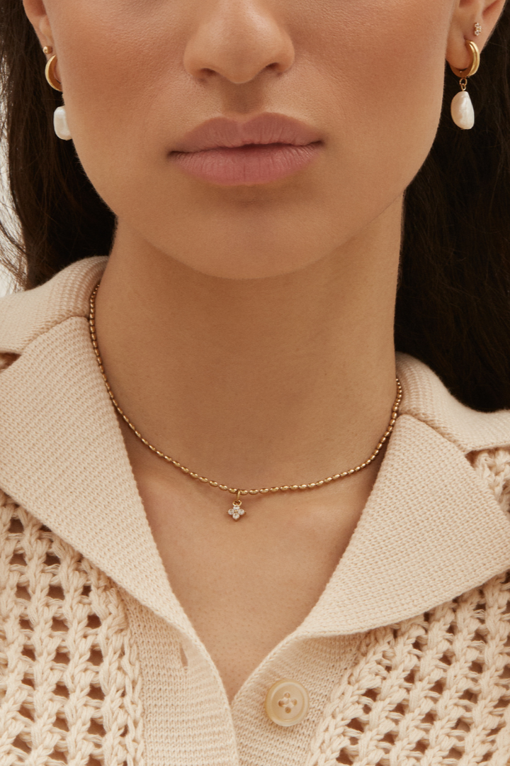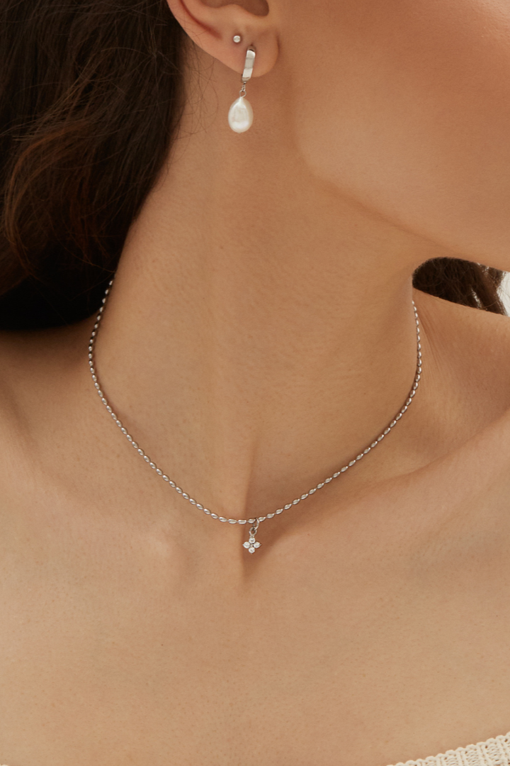 This adorable piece is adorned with delicate oval pearls and a cubic zirconia pendant. Delicate and sparkling, it instantly enhances your outfit and goes with everything.