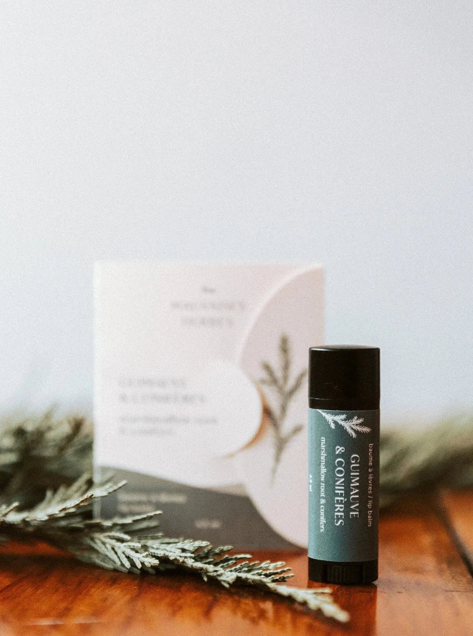 Contains ingredients from Quebec : marshmallow, sunflower oil, sunflower wax, balsam fir essential oil, black spruce essential oil.