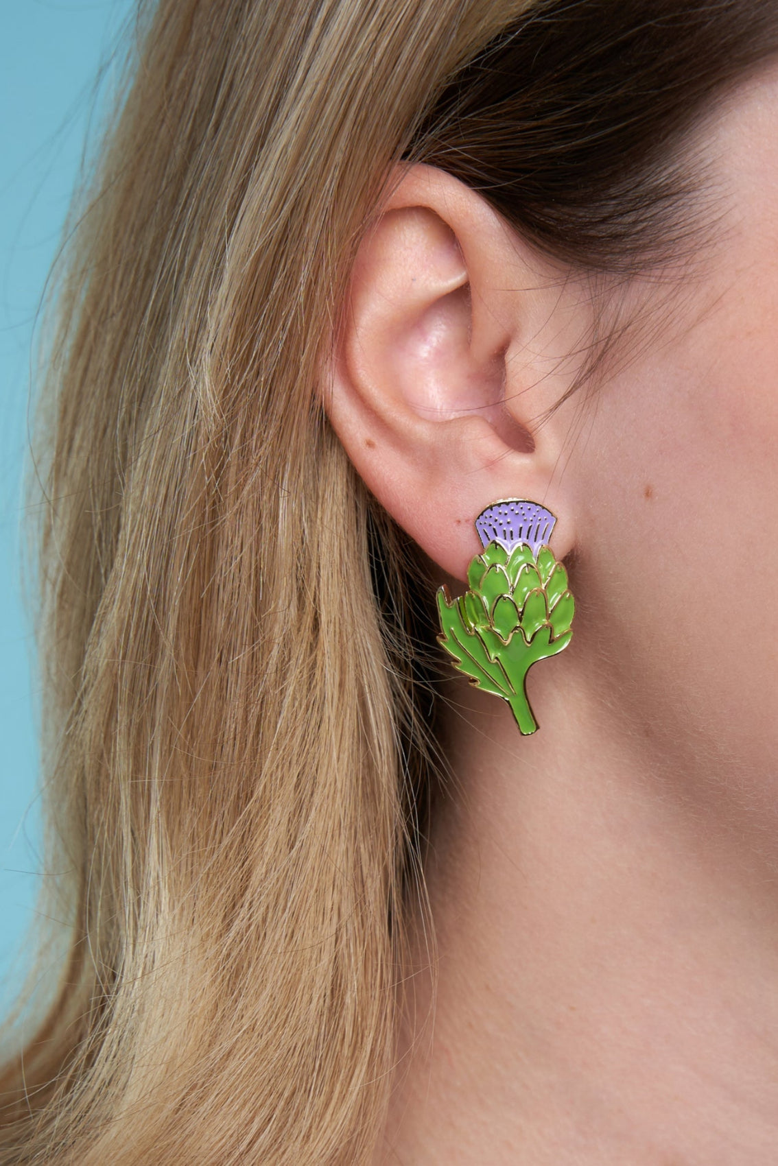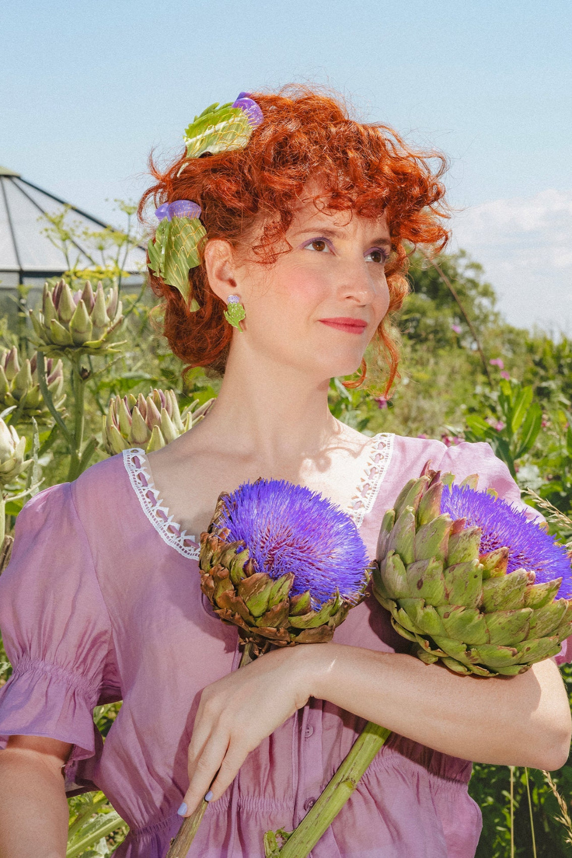 A special dedication to the most beautiful flower in the vegetable garden, the artichoke flower! It captivates us with its movie-like purple color and incredible honey scent. It needed a pair of earrings to celebrate it, like vintage jewelry found at a flea market.