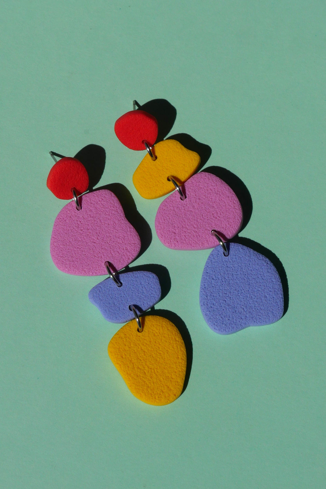 Clay earrings carefully handcrafted in Montreal. Due to their artisanal nature, some variations between the photo and the actual pair are possible, adding an extra touch of uniqueness to each piece!