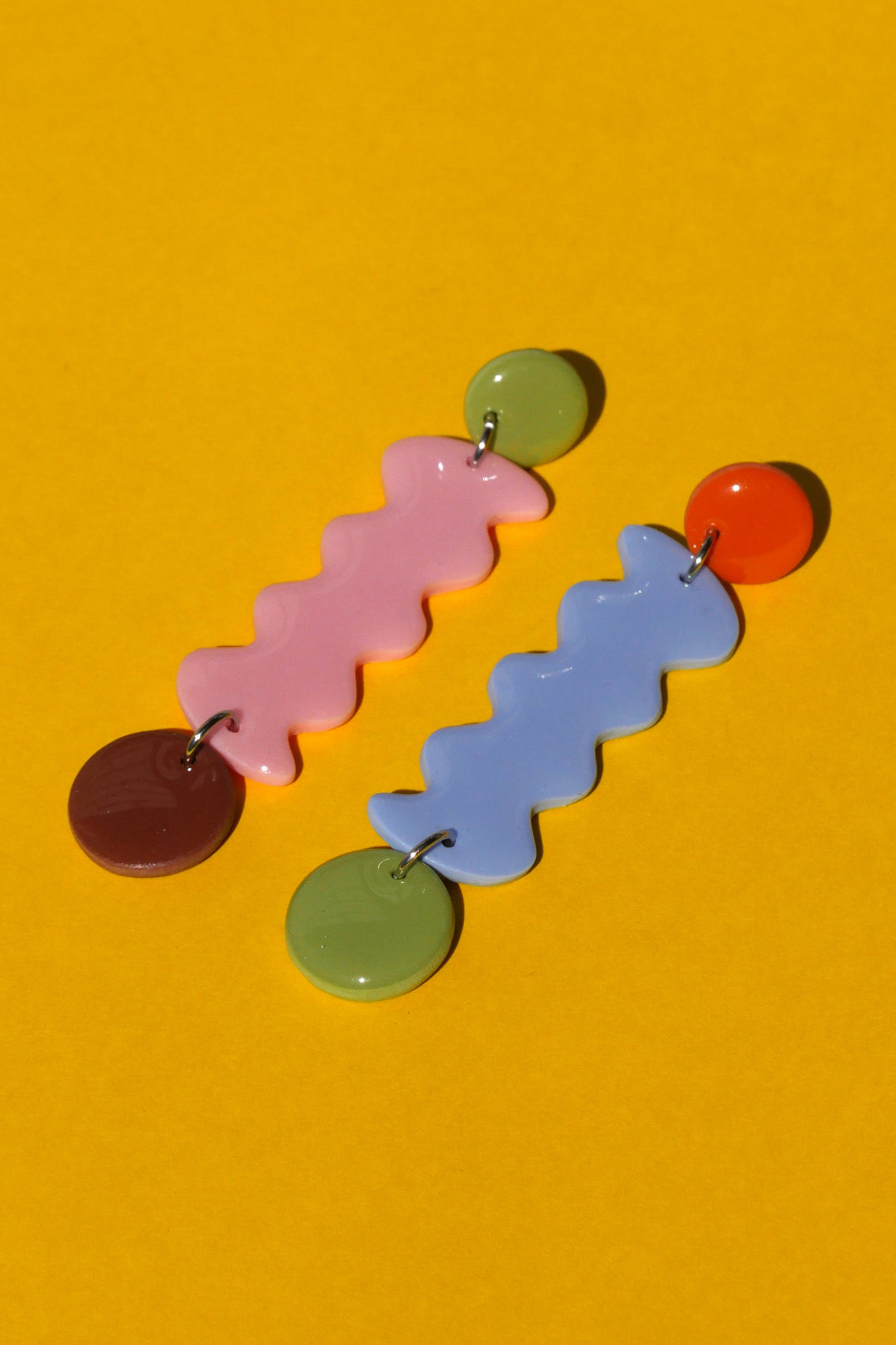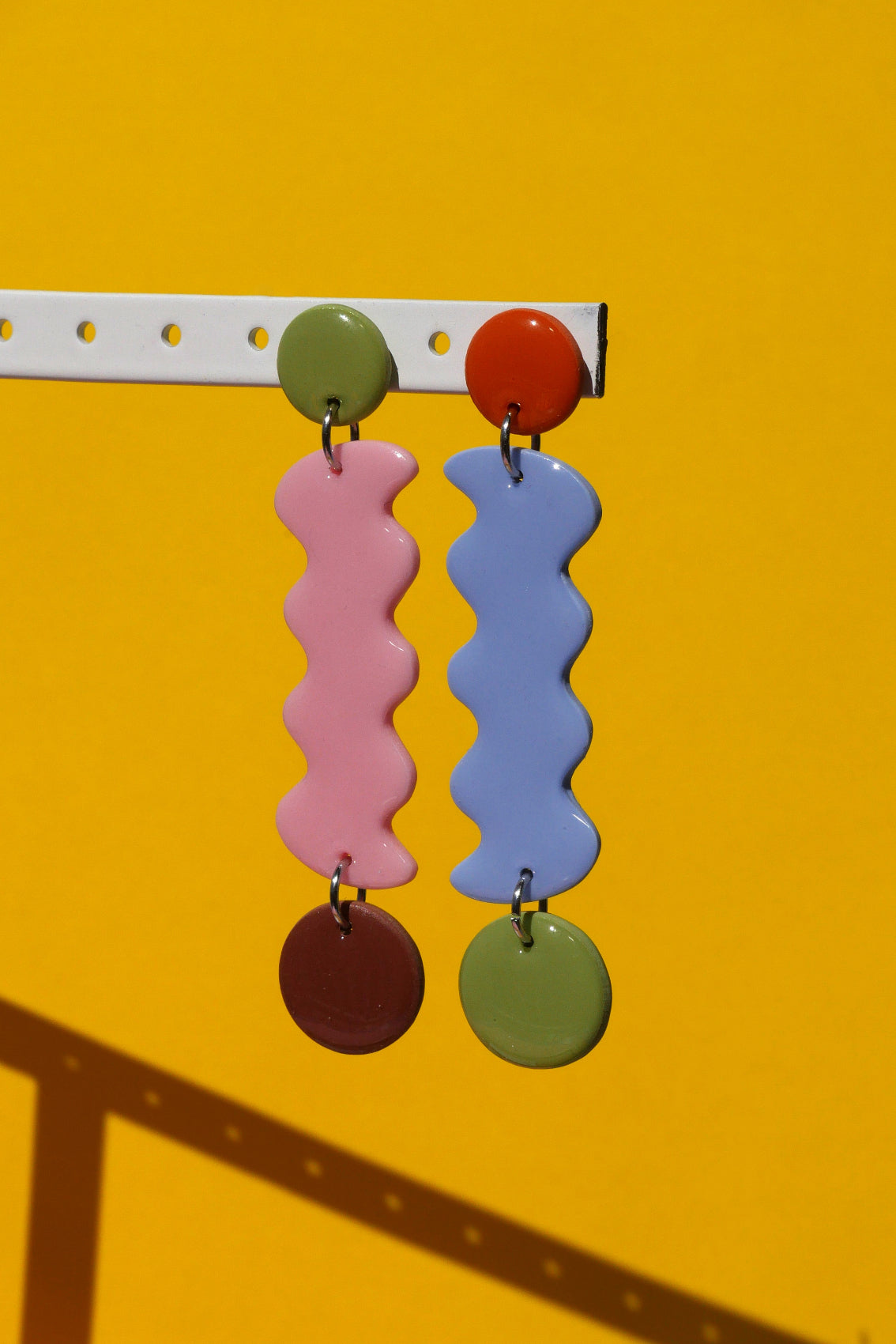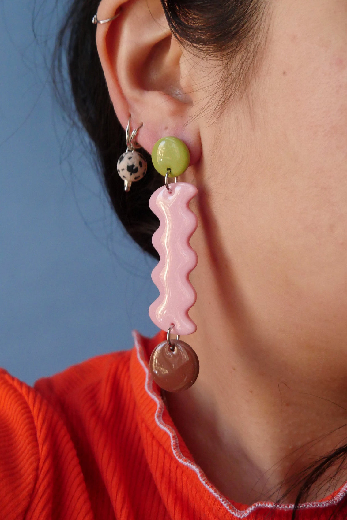 Clay earrings carefully handcrafted in Montreal. Due to their artisanal nature, some variations between the photo and the actual pair are possible, adding an extra touch of uniqueness to each piece!