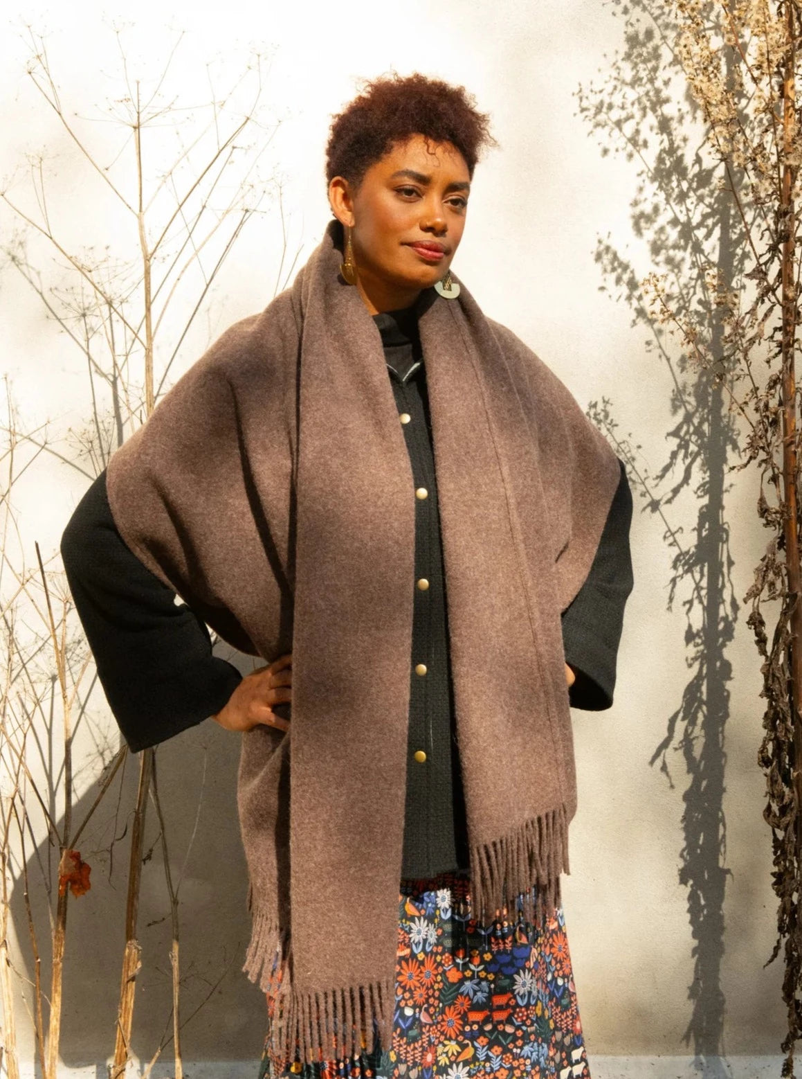 The shawl offers a unique touch to your wardrobe. Its rectangular size and fringes give a multitude of wrapping possibilities, for all styles. Made from exceptional Italian wool, this shawl is a blend of luxury and economy.