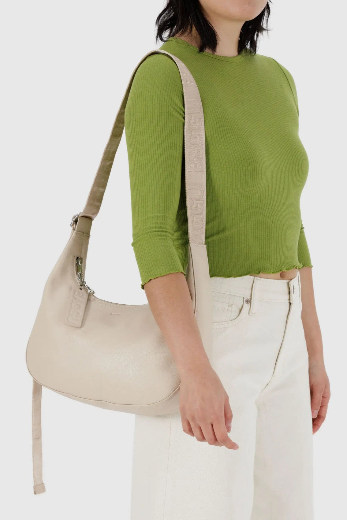 BAGGU Medium Crescent Recycled Leather Bag - Stone