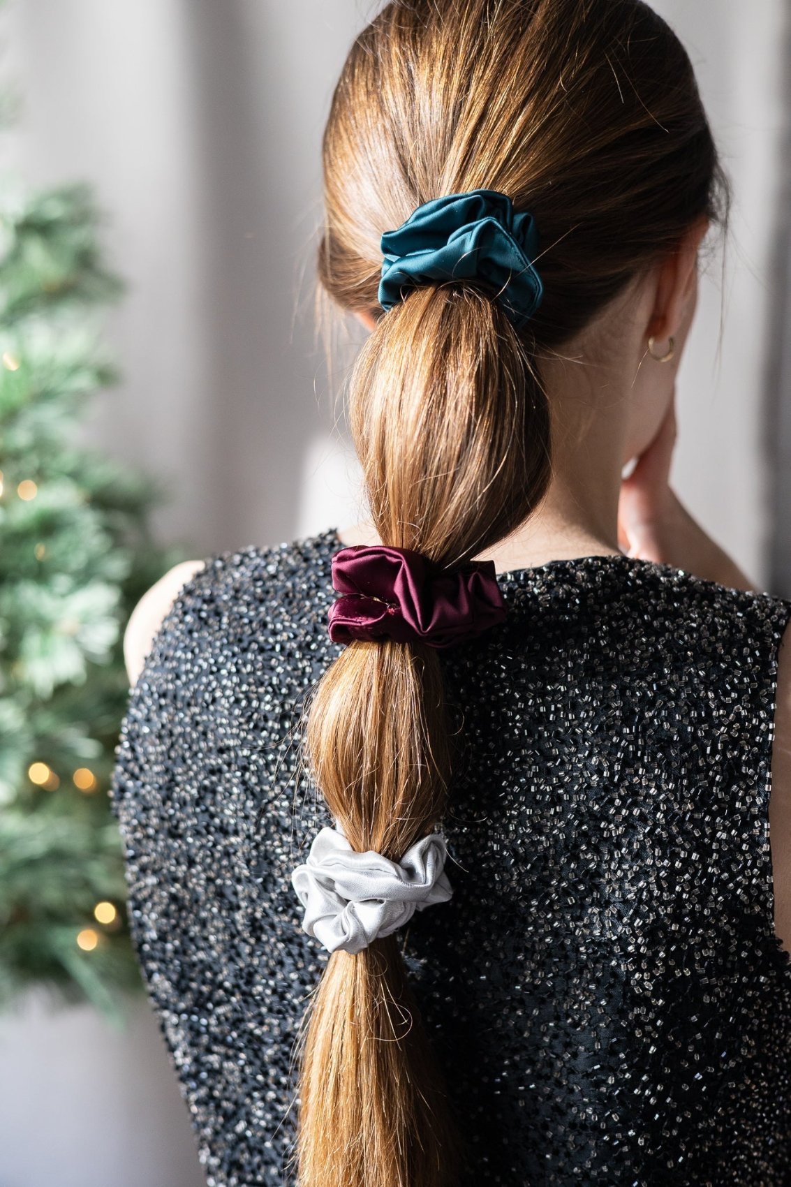 Our satin scrunchie duo includes two sizes – mini and large – to diversify your hairstyles.