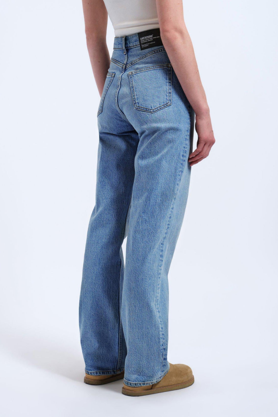 Relaxed low-rise fit with a straight, wide leg. The hem is slightly tapered to fit snugly over your shoes. Size up inseam for added volume. Made from 100% cotton denim.