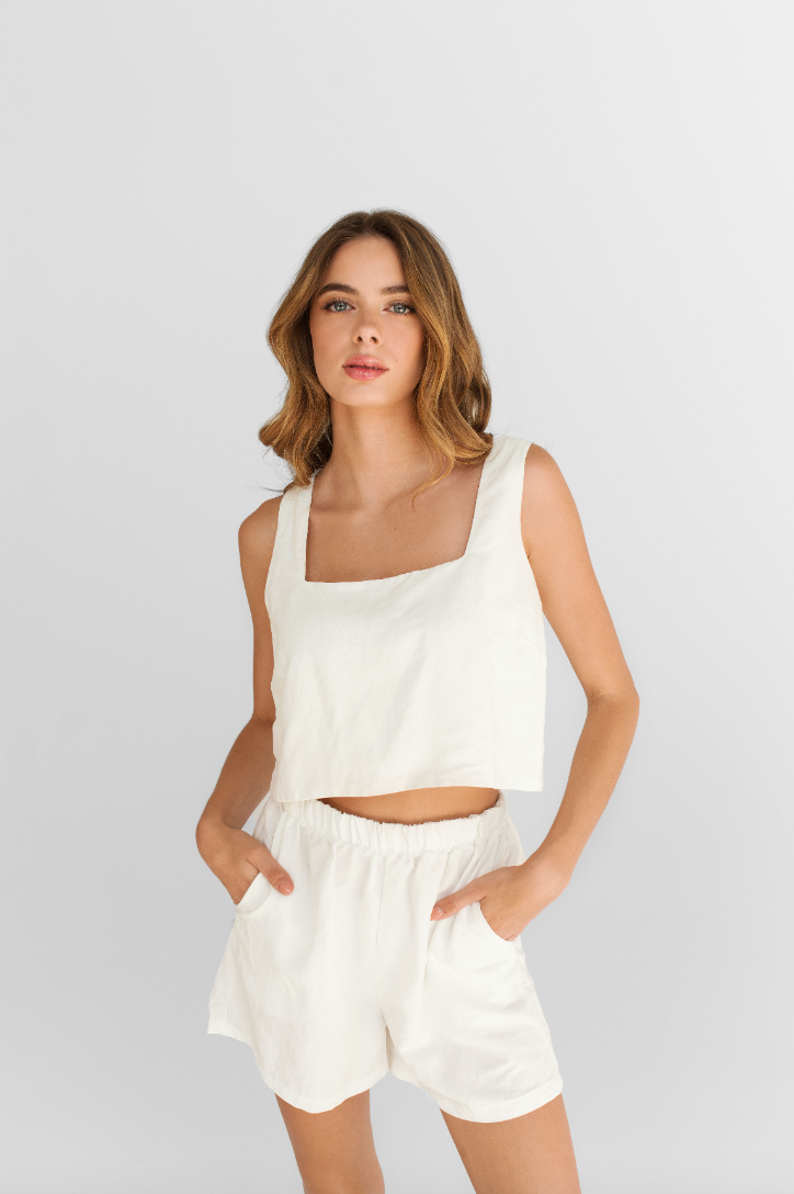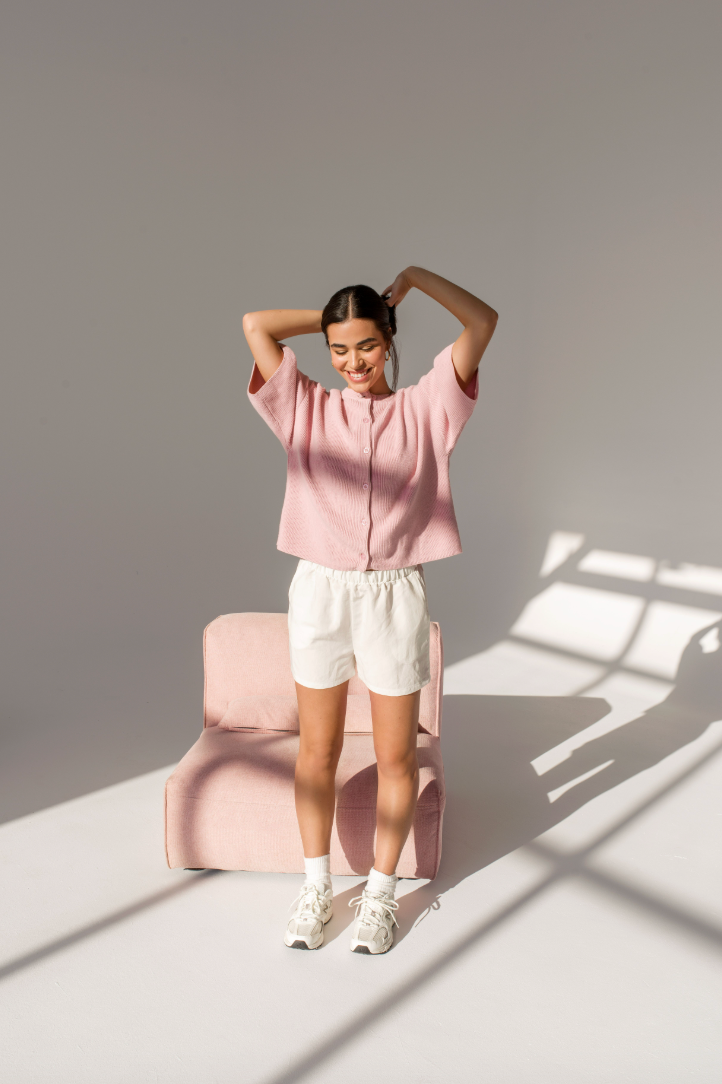 We like to wear with: A shirt half open with a Kassie camisole or simply with a white t-shirt. We also love to pair these shorts with the Cléo blouse, the Leona jacket or the Maude cardigan.