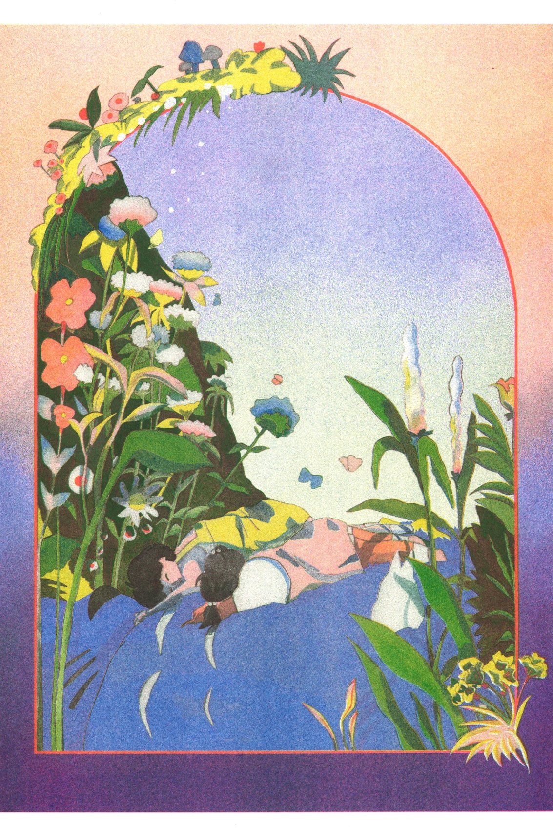 Having passed through Brussels, Jeanne Saboureault now lives in Lyon. A migration that can only delight us since we welcome with her her penchant for living colors, her sensitivity for the intimate and her expertise in the relationships between man and nature. The one who can also be called JANO (from the name of her children's project initiated when she left school) thus feeds on immense landscapes as well as buried feelings. Rather than separating them, she makes them complements, the elements of a great whole that respond to and enrich each other. Her illustrations bear witness to this intermingling, combining the humble line with the visual explosion, the silence of meditation with the din of dazzlement. A drawing in the form of a union.