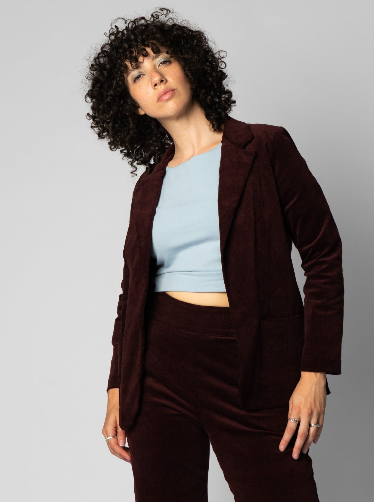 Chic and textured jacket for all occasions. It has a classic cut with a rounded bottom and pockets.