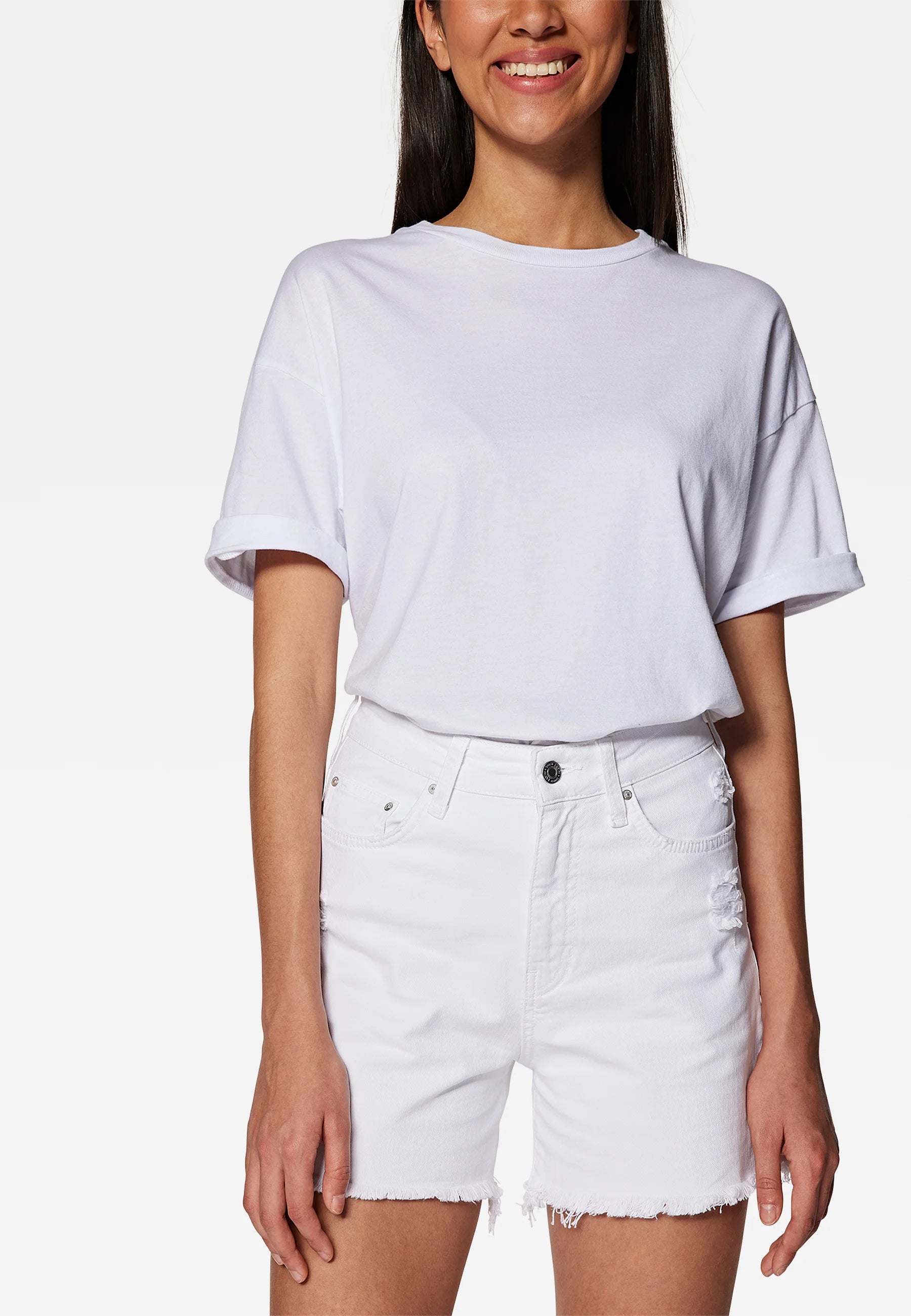 Shorts with a relaxed retro cut with plenty of room and a longer inseam, a raw frayed hem and a high waist that always helps you feel comfortably supported!