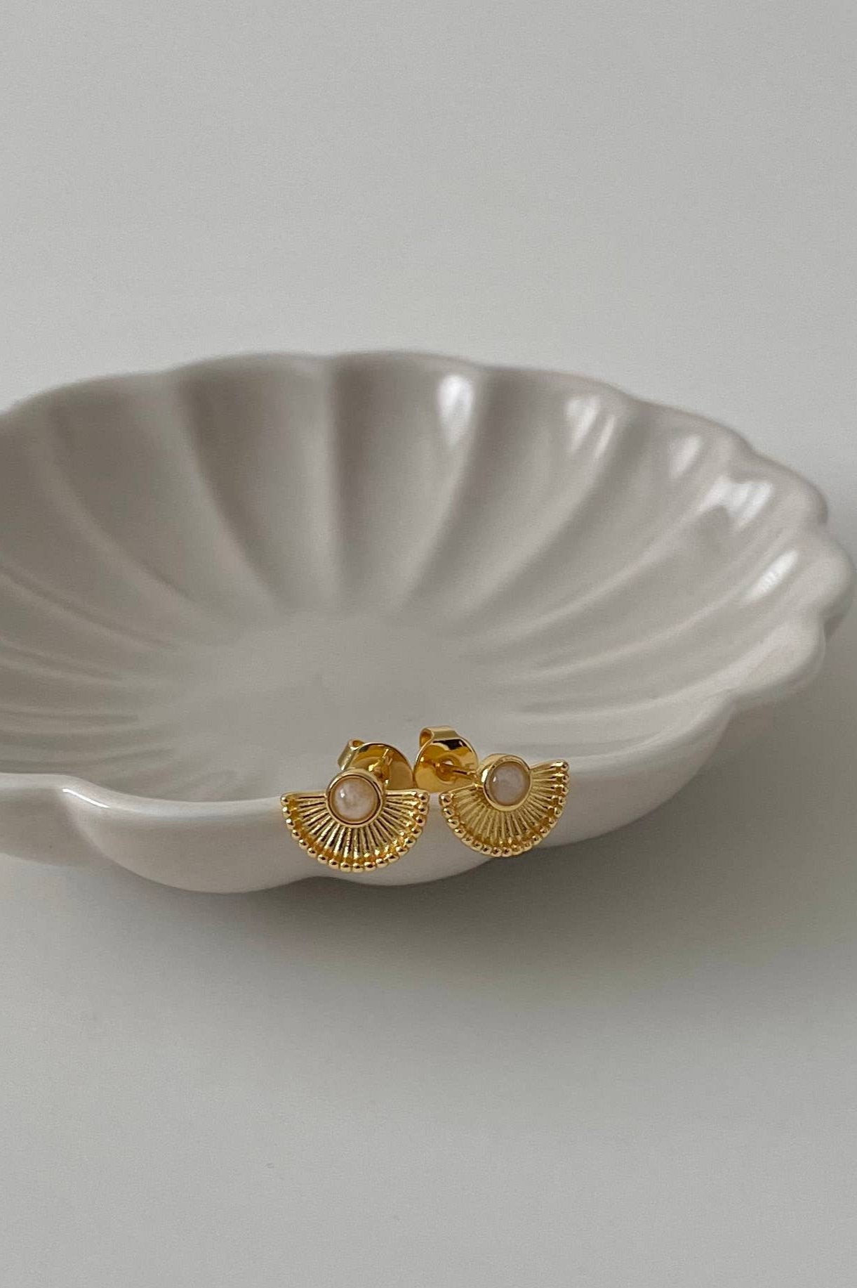 Marigold inspired stud earrings for flower lovers with a moonstone in the middle.