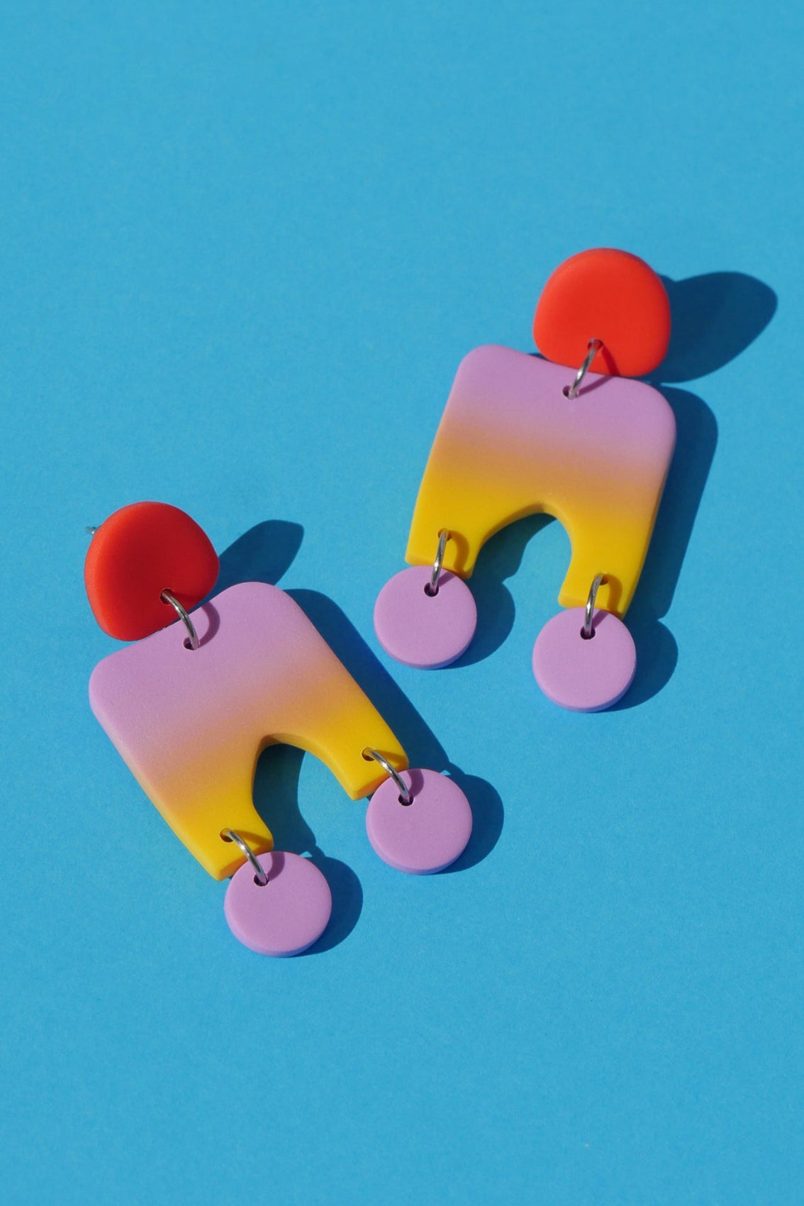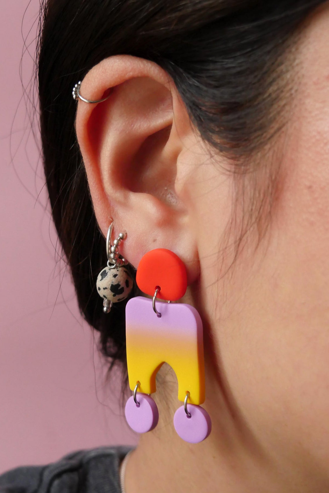 Polymer clay earrings carefully handcrafted in her Montreal studio.
