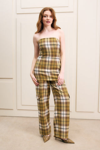 HILARY MACMILLAN Panatalon Cargo Plaid - Green