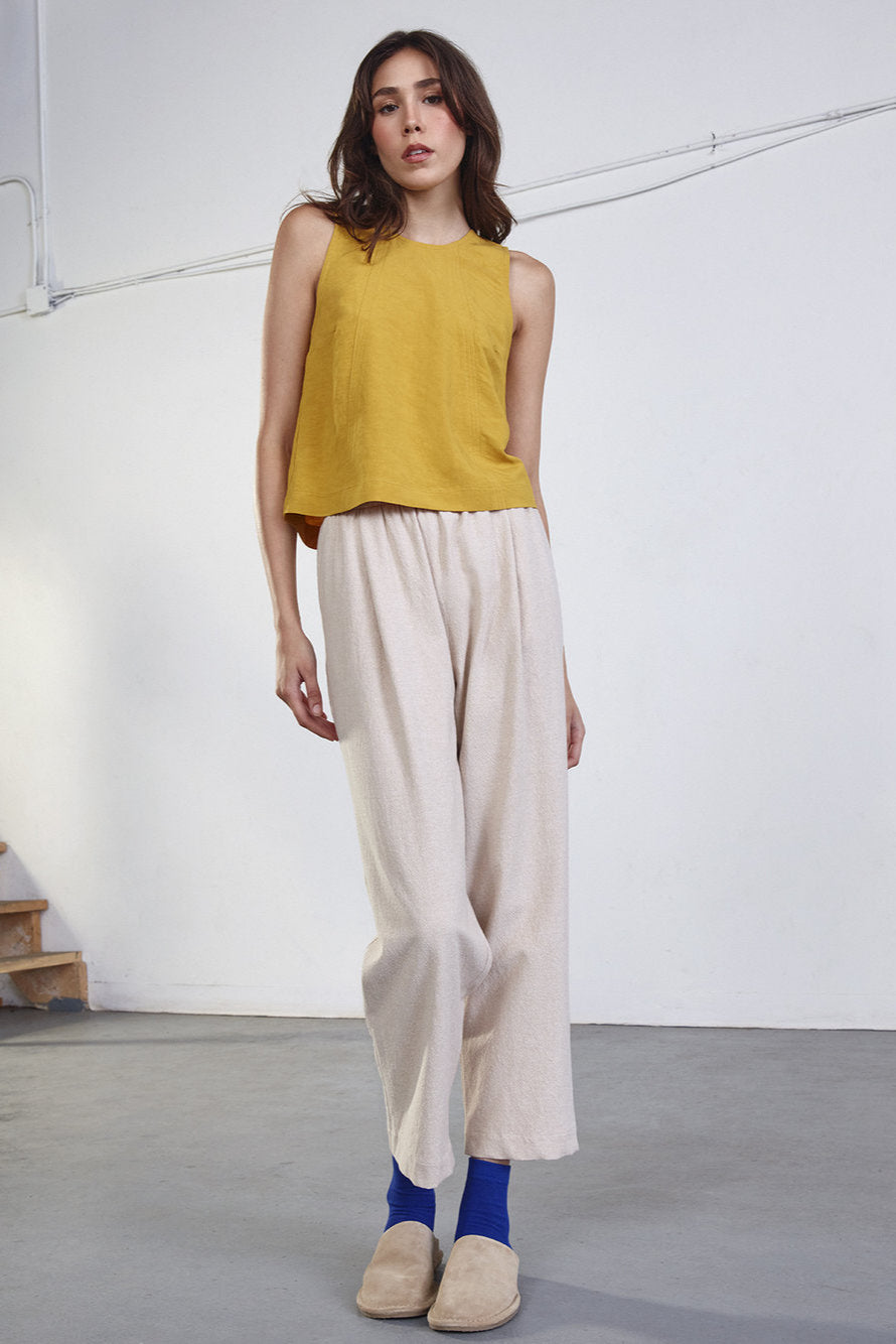You will be fashionable and comfortable all day long with these pants. Its elastic waistband which makes it comfortable and its wide leg give you a chic and casual look.