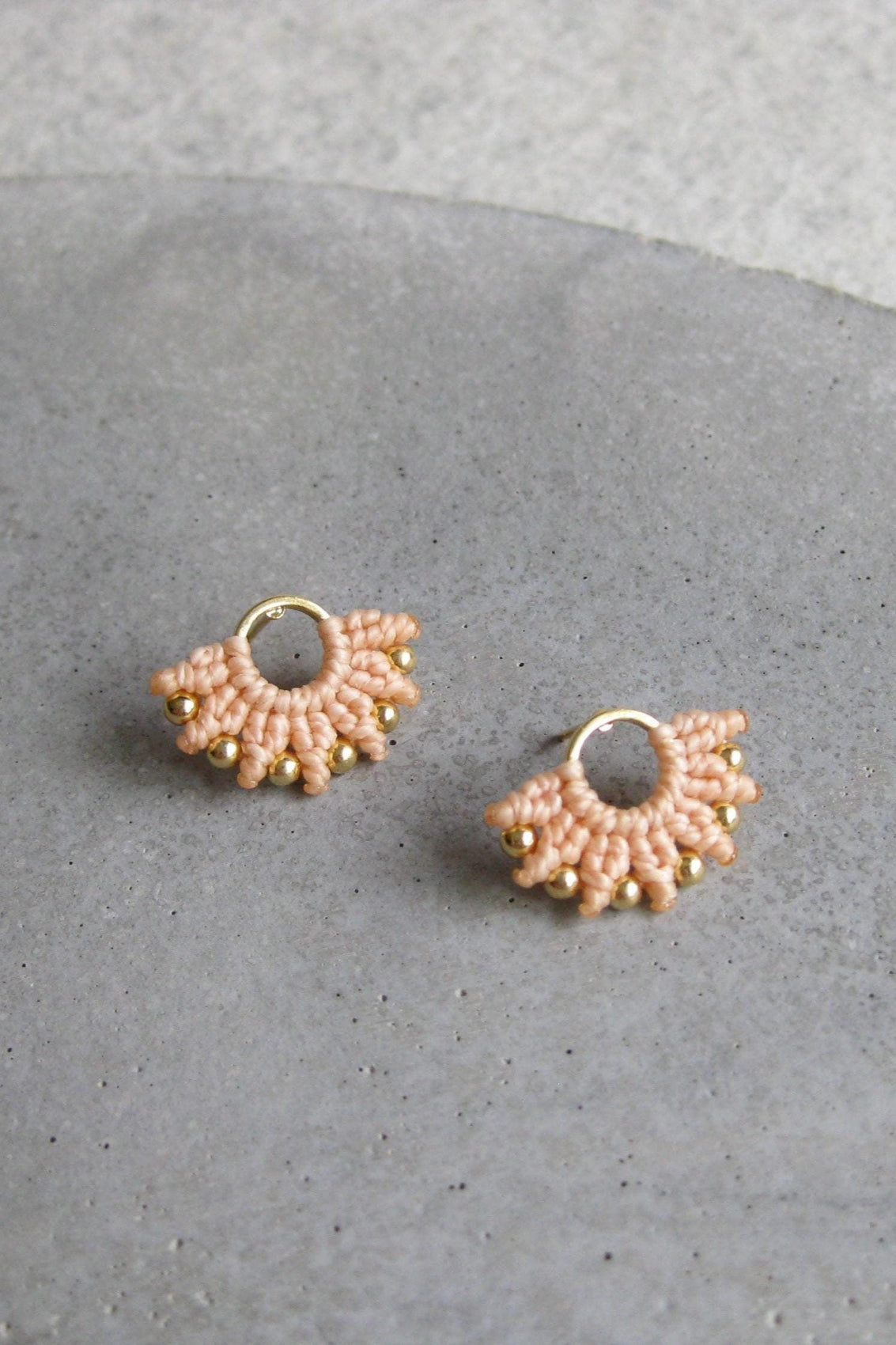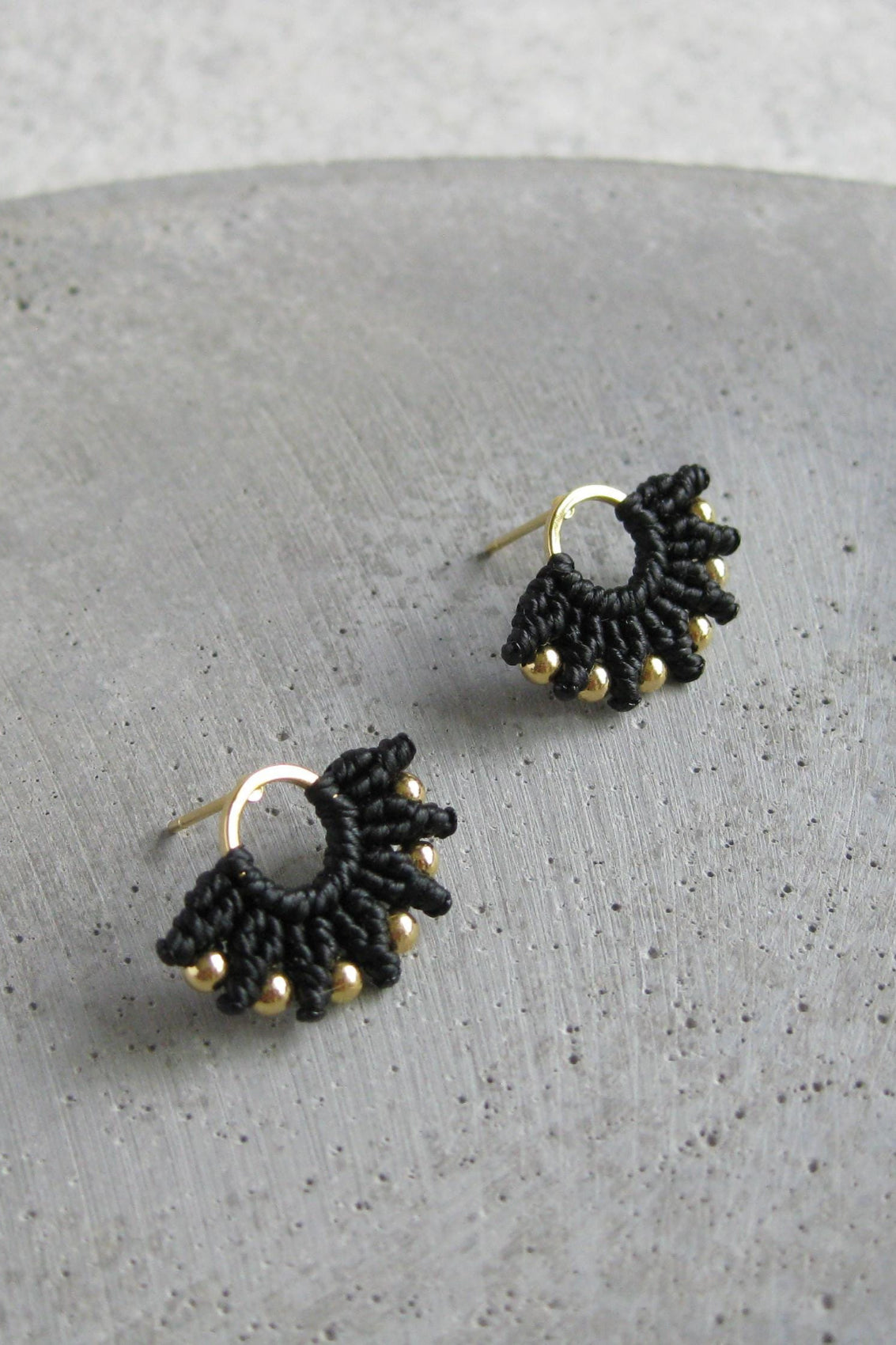 Combining elegance and fantasy, the Vega earrings are made one tiny knot at a time using the micro macramé technique.