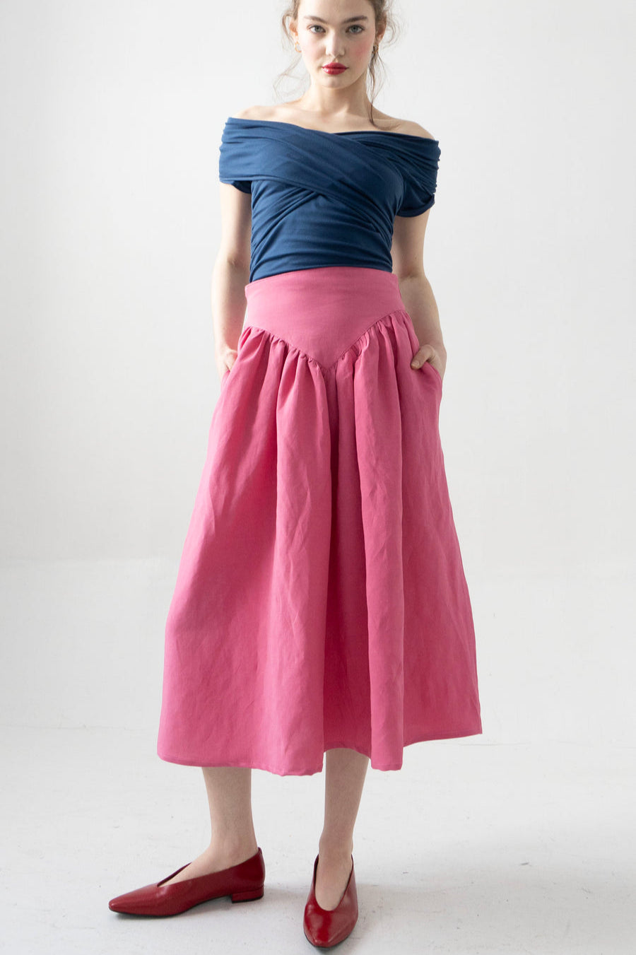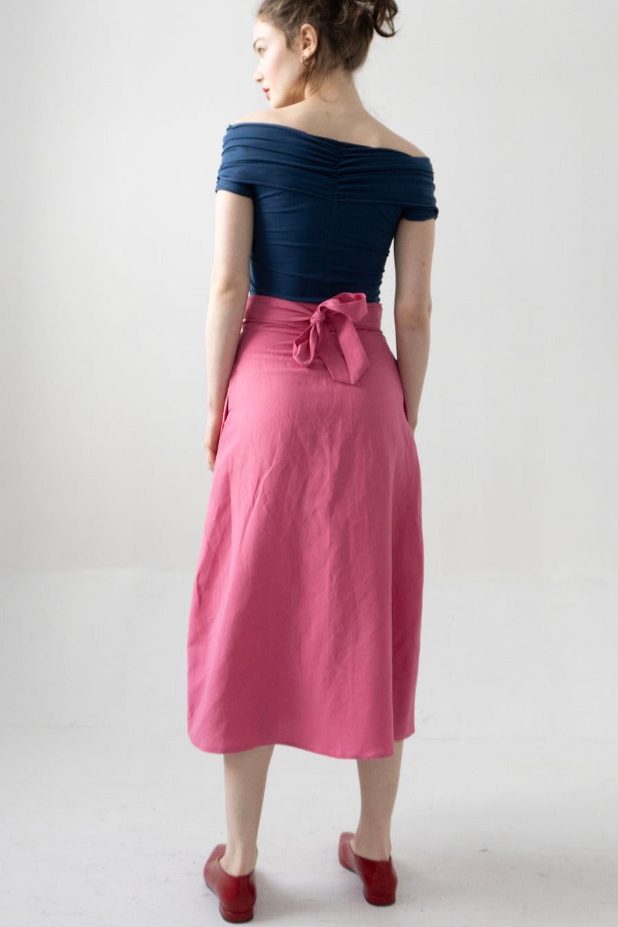 The skirt version of the Magdala dress is an easy-to-wear skirt, both dressed up and down. It features two pockets and an invisible side zipper. The tie at the back allows you to adjust the skirt by 2.5 cm.