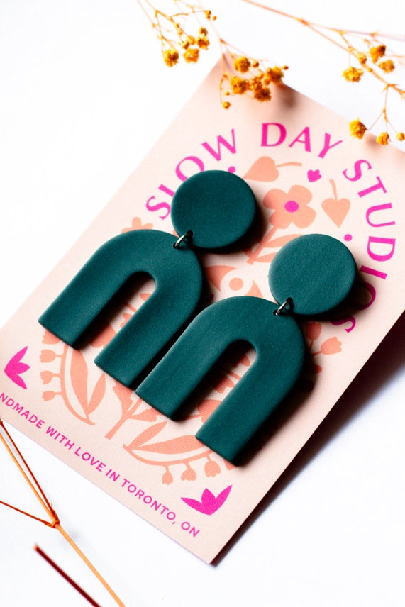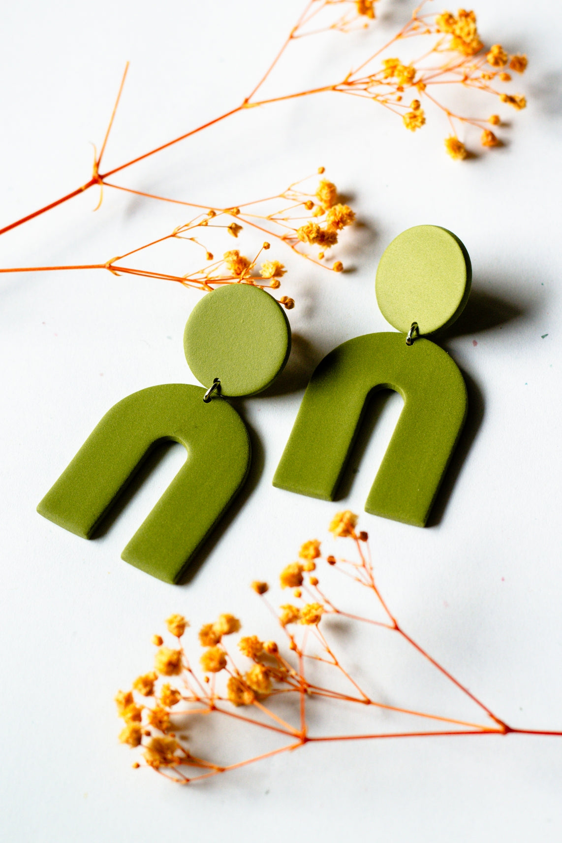 These polymer clay arch drop earrings are oversized and the perfect everyday accessory. This pair comes in a trendy orange, all parts are made of surgical stainless steel and sealed with UV resin.