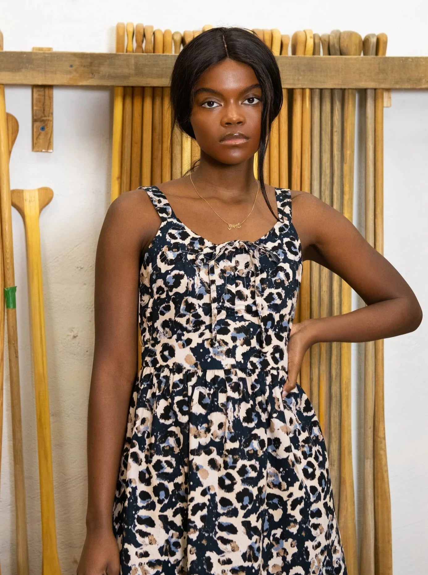 Beautiful long linen bustier-style dress with straps. Adjustable neckline with or without gathers thanks to the cords that can be tied at the neck or looped at the front.