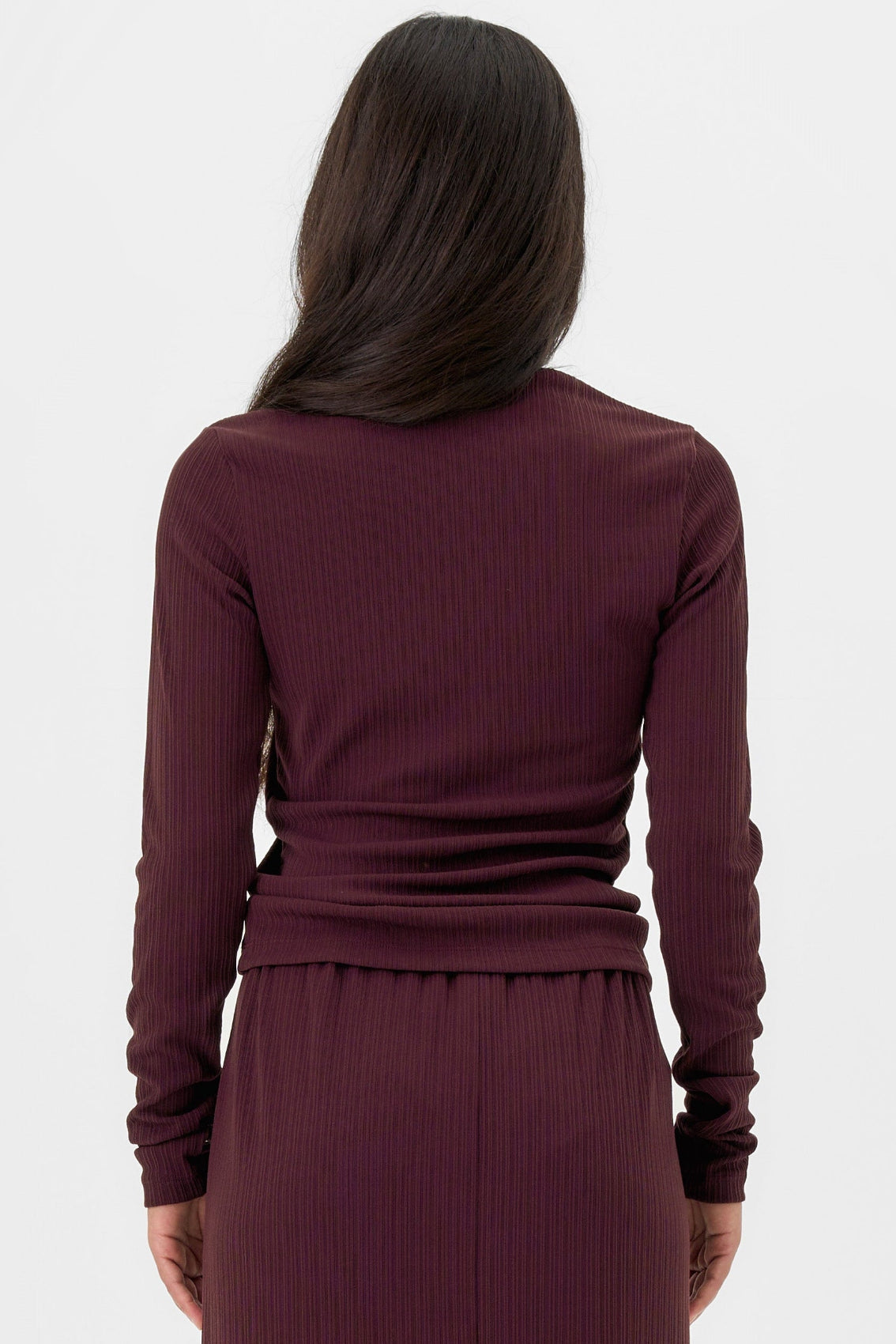 VALERIE C. Ribbed High Neck Top - Mauve Fig