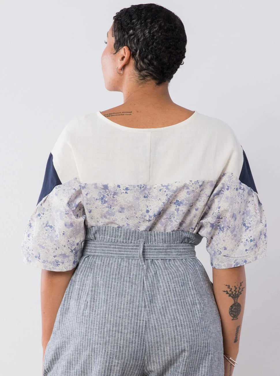 This pretty top has wide sleeves and a boxy bodice. It features color-blocked pleats at the shoulders and a simple crew neck for easy wear. The Sabe top is comfortable and unique.