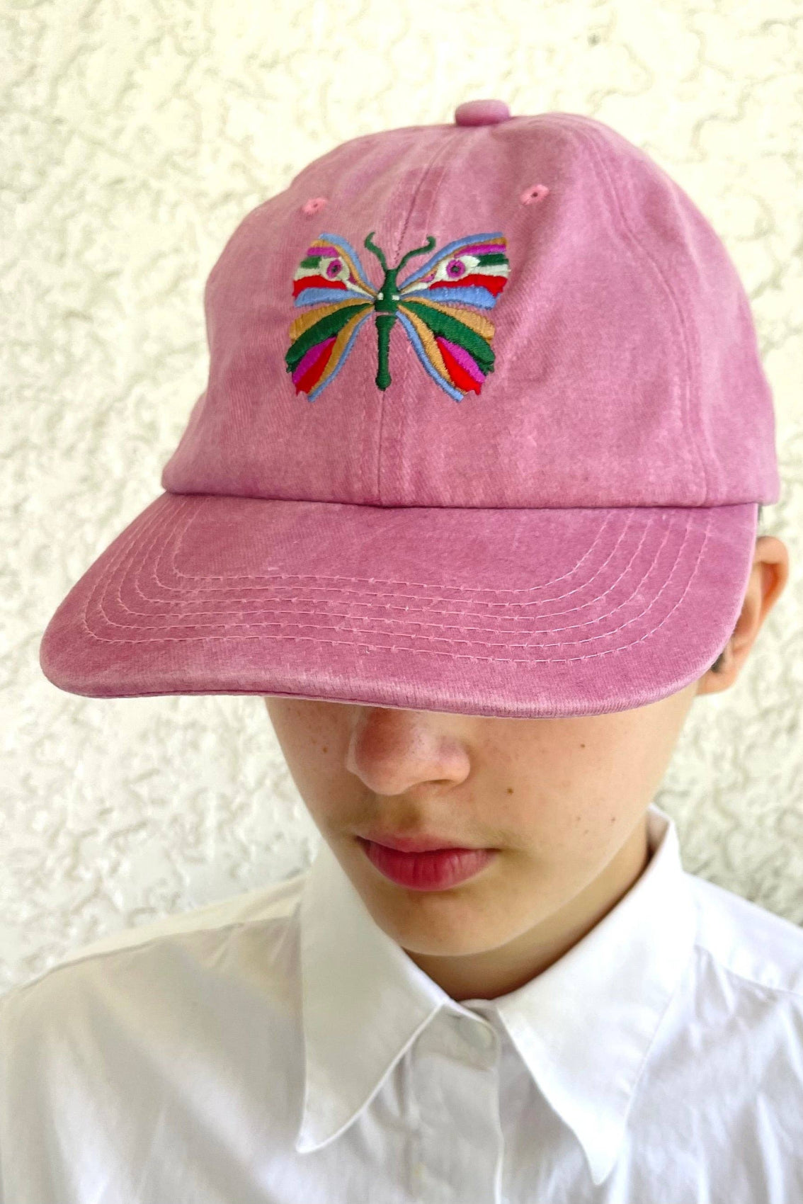 A multi-colored butterfly embroidered on a faded pink cap for a soft yet bold look. Colors full of joy and a symbol of transformation that won't go unnoticed. 100% stonewashed cotton, unisex, low-profile cap with an adjustable size.