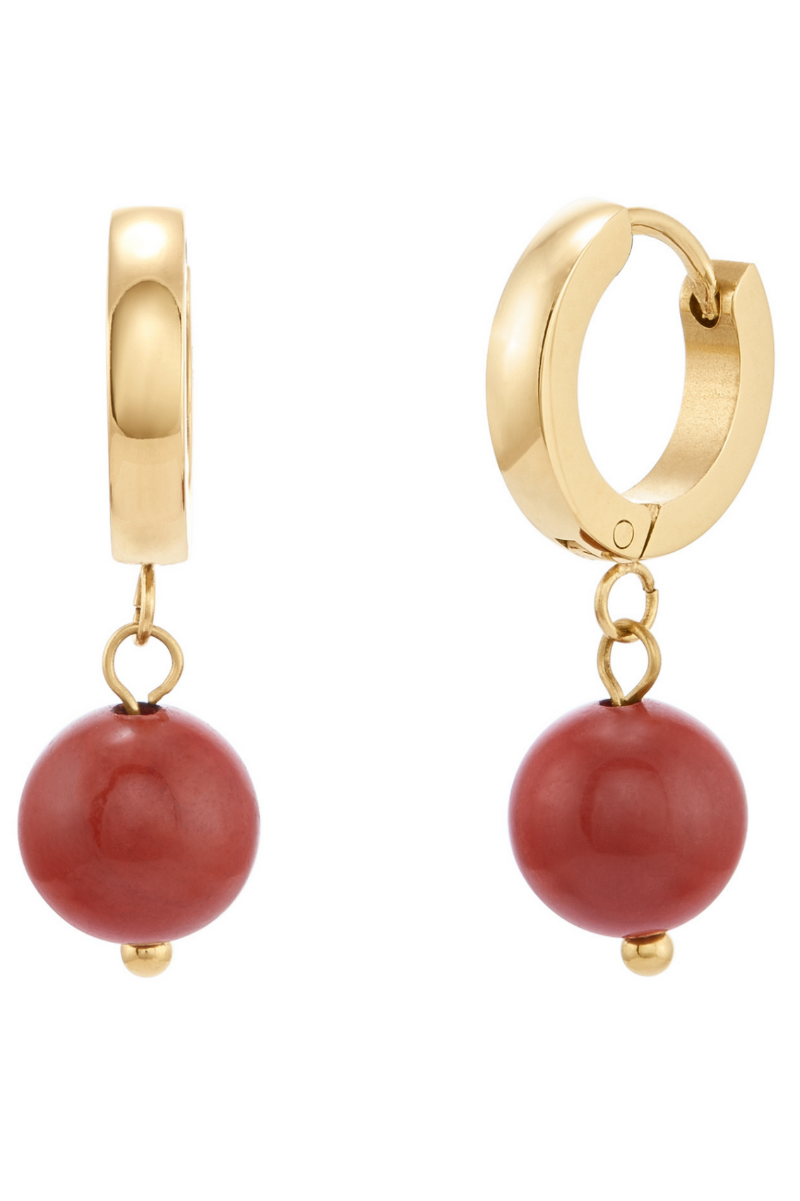 Fall in love with the Terracotta Hoops. These adorable earrings are adorned with red jasper pendants that will add a subtle touch of color to your favorite outfits.